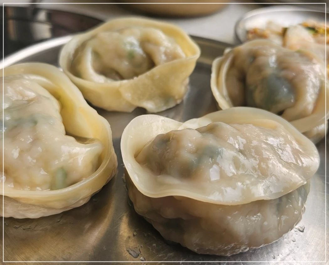 1개에 2000원꼴인데요, 직접 만든 수제에다가 크기도 꽤 커서 요 만두 4개만으로도 충분히 배부른 식사가 될 것 같아요.