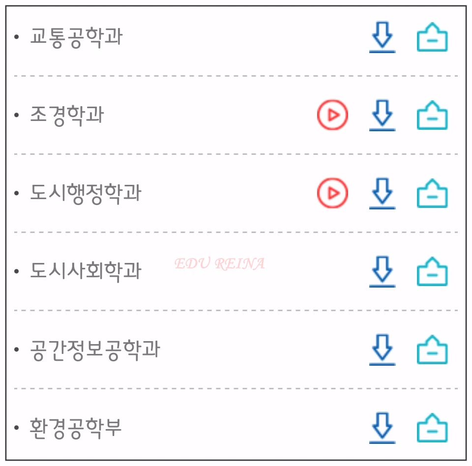 위의 링크버튼을 통해서 '서울시립대 입학처 홈페이지'에 들어가시면 '전공별 안내' 페이지로 연결됩니다.
