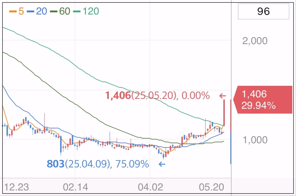 2025년 5월 20일, 압타머사이언스의 주가는 개장 후 급등하며 오전 9시 28분 기준 29퍼센트 넘게 오르며 상한가를 기록했습니다.