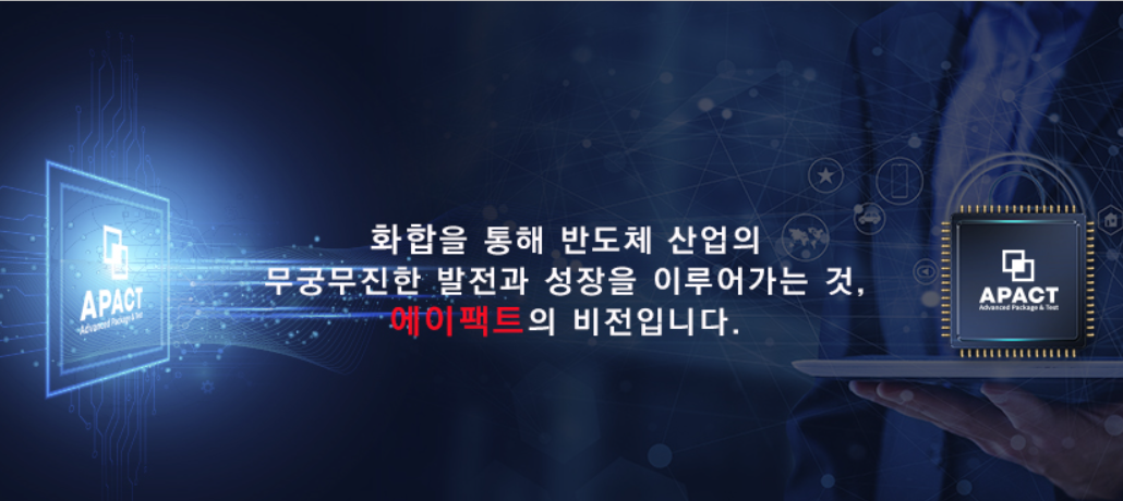 에이팩트는 2007년 하이닉스 협의회 회원사들의 공동 출자로 설립된 반도체 후공정 전문 기업입니다.