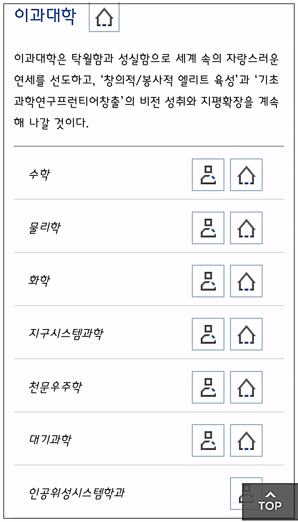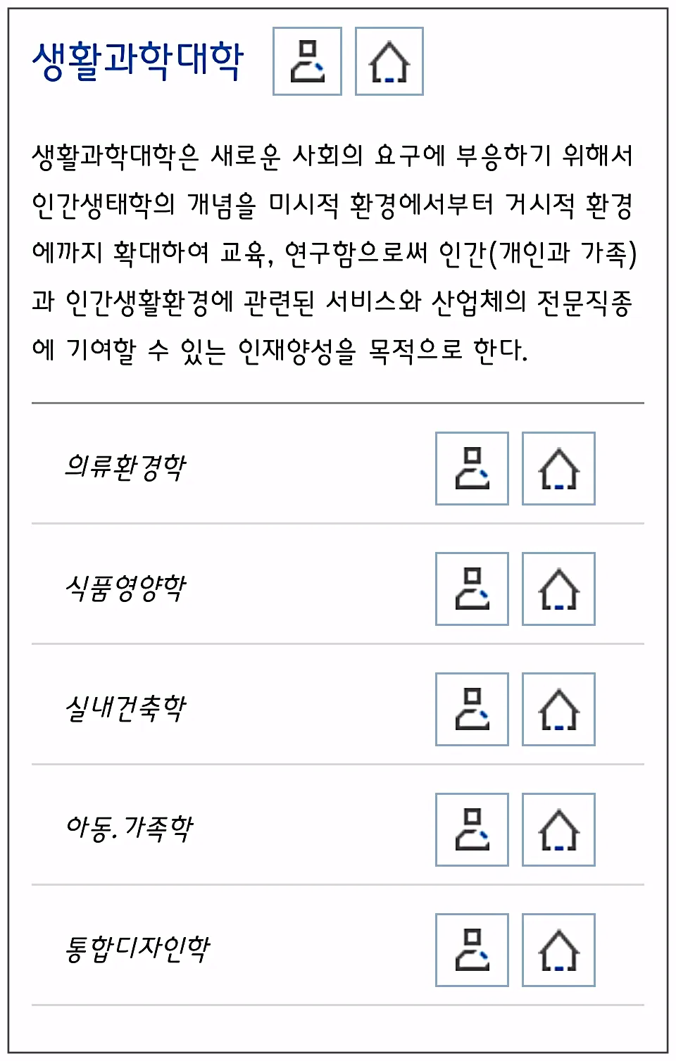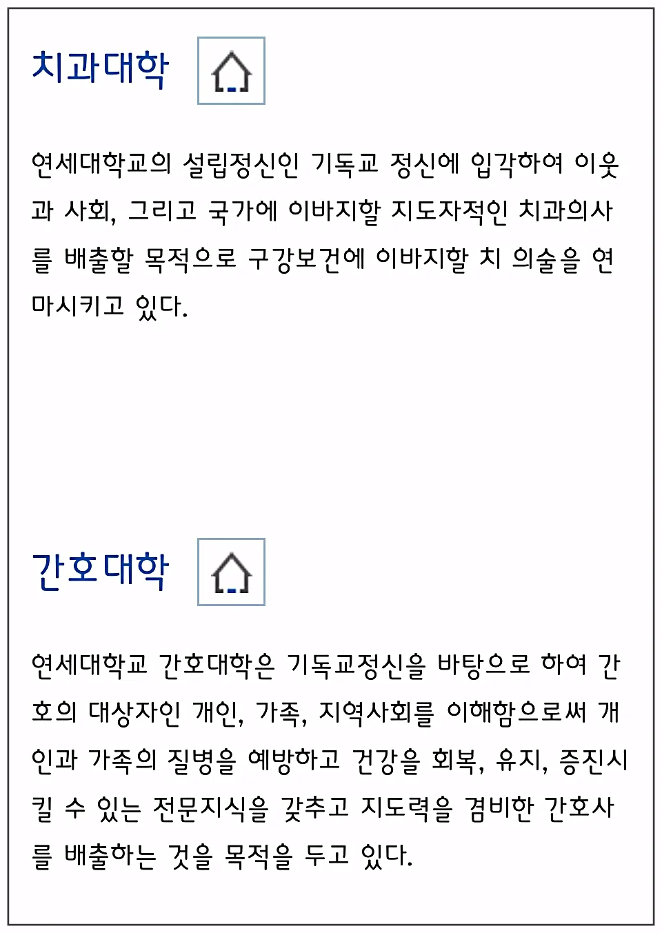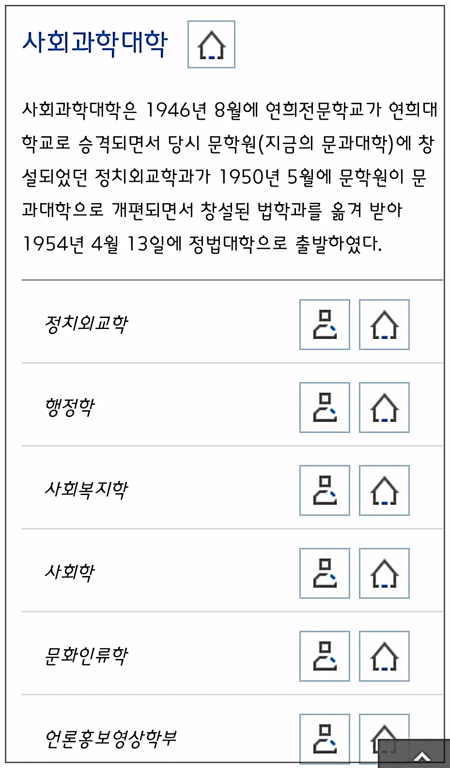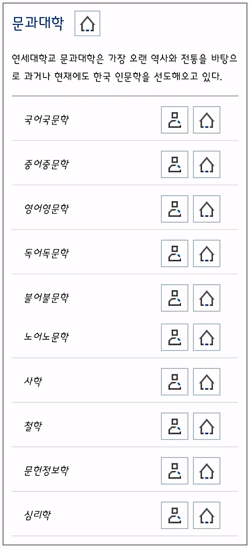 연세대의 학과 종류