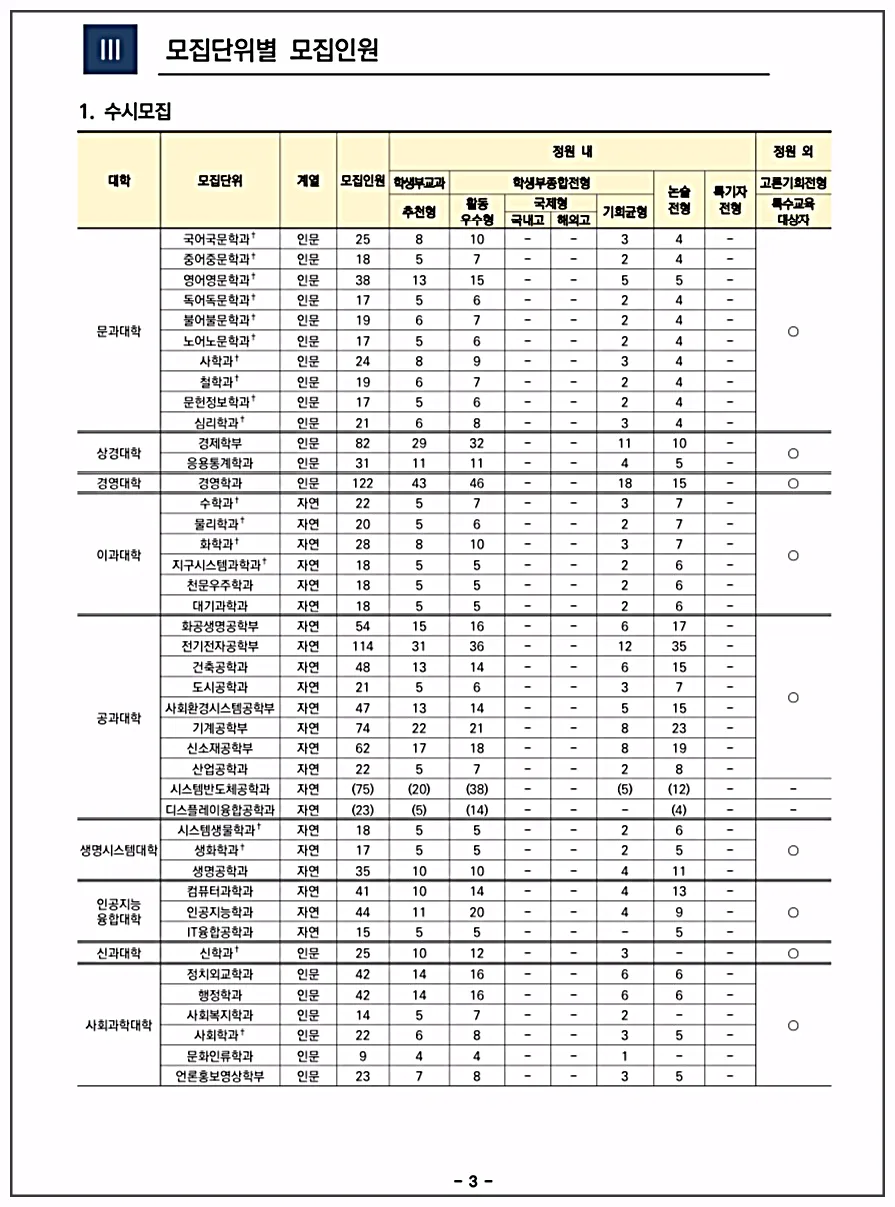 관심이 있는 학과의 모집단위와 모집인원이 어떻게 되는지, 조건은 따로 없는지, 자격 요건은 되는지 등등 꼼꼼하게 살펴보고 나중에 불이익을 받는 일이 없도록 해야 하겠지요.