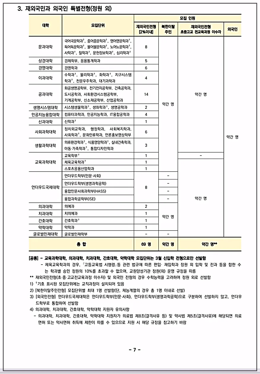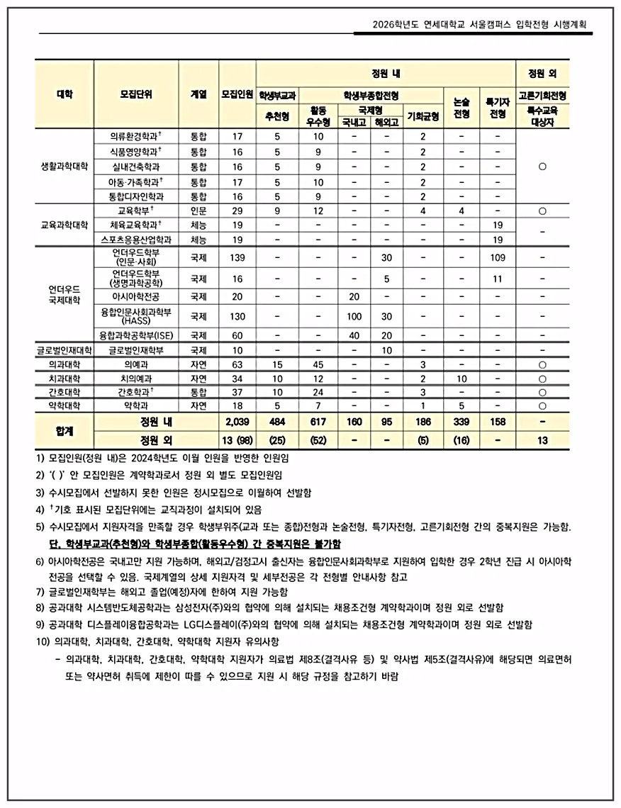 이상, 연세대학교의 학과 종류와 2026학년도 입학전형 변경사항, 모집인원 등에 대해 살펴보았습니다.