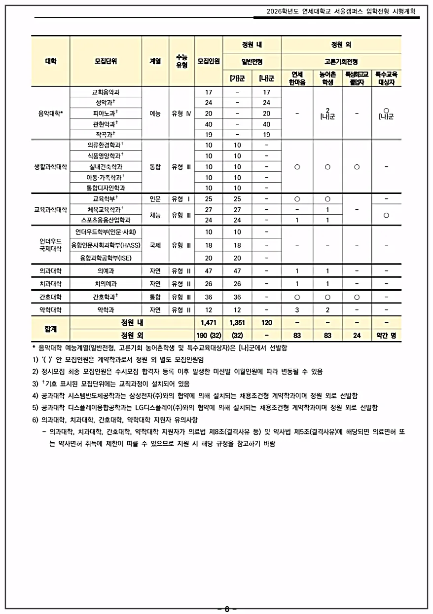 이번 포스팅에서는 연세대의 학과 종류와 2026학년도 입학전형 주요 변경사항 및 모집인원에 대해 먼저 살펴볼까 합니다.