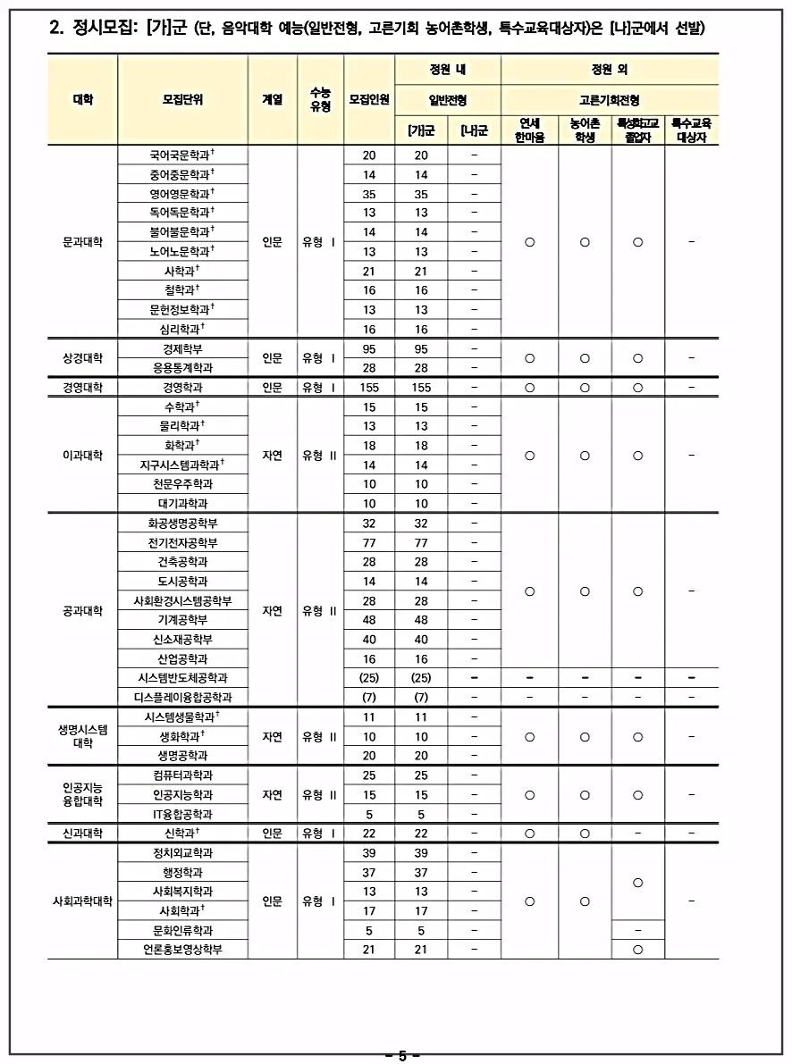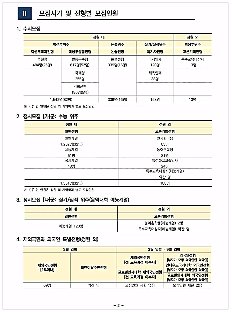 | 2. 정시모집 가군(수능 위주) /나군(실적 실기 위주) |