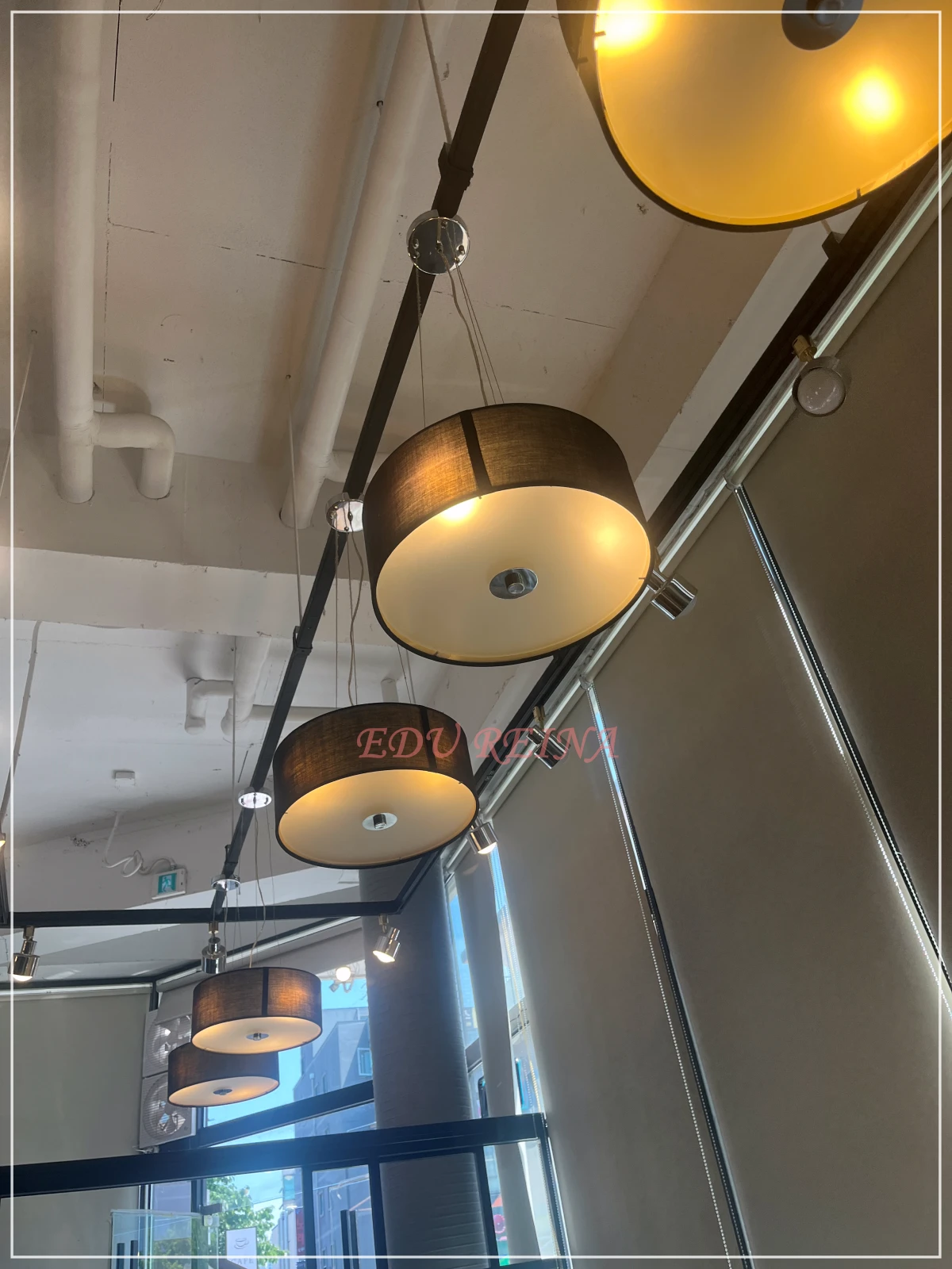 천장이 높고 조명도 예뻐서 개방감이 있고 분위기가 아늑한 느낌입니다.