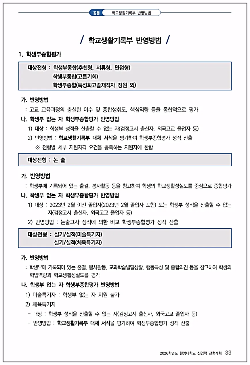🔻[관련포스팅] 2026 한양대 수시 모집요강