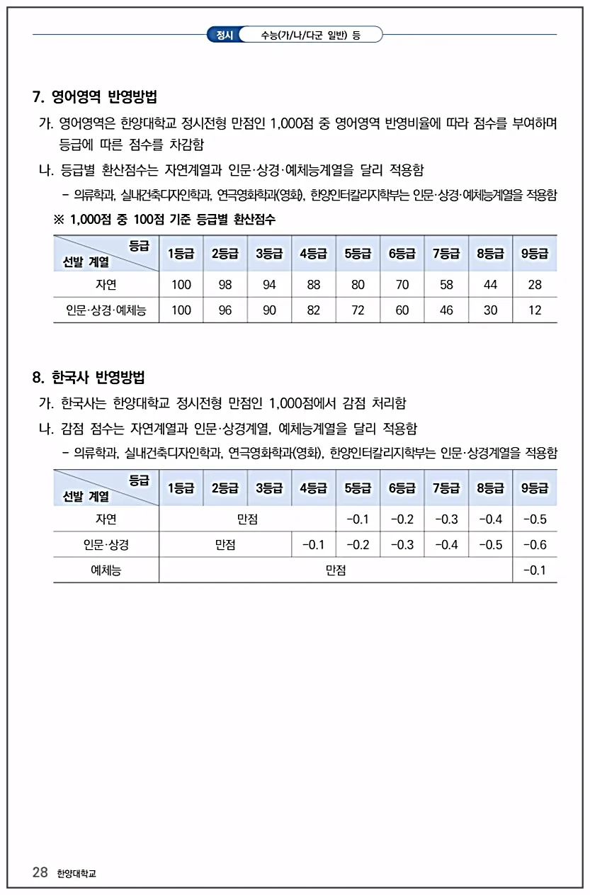 영어영역 : 환산점수 / 한국사 : 감점 처리