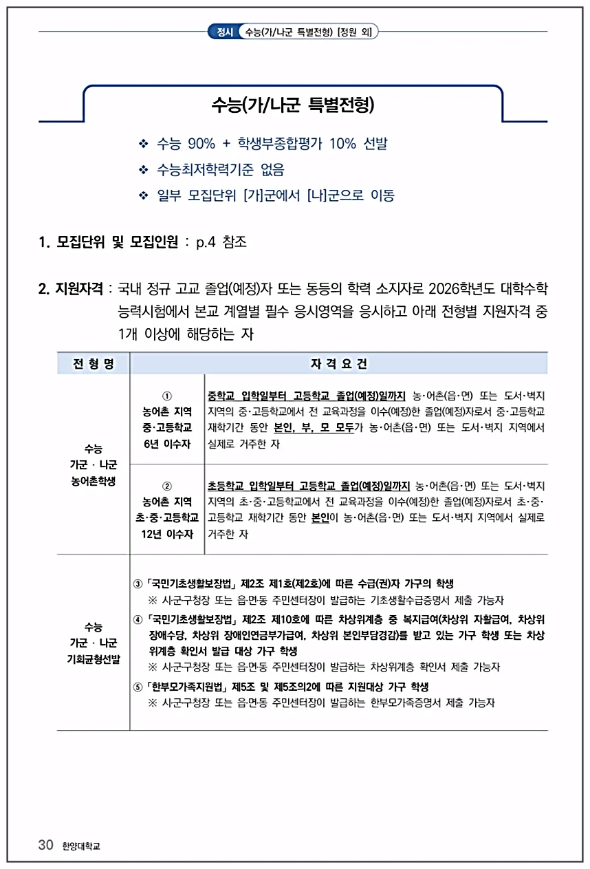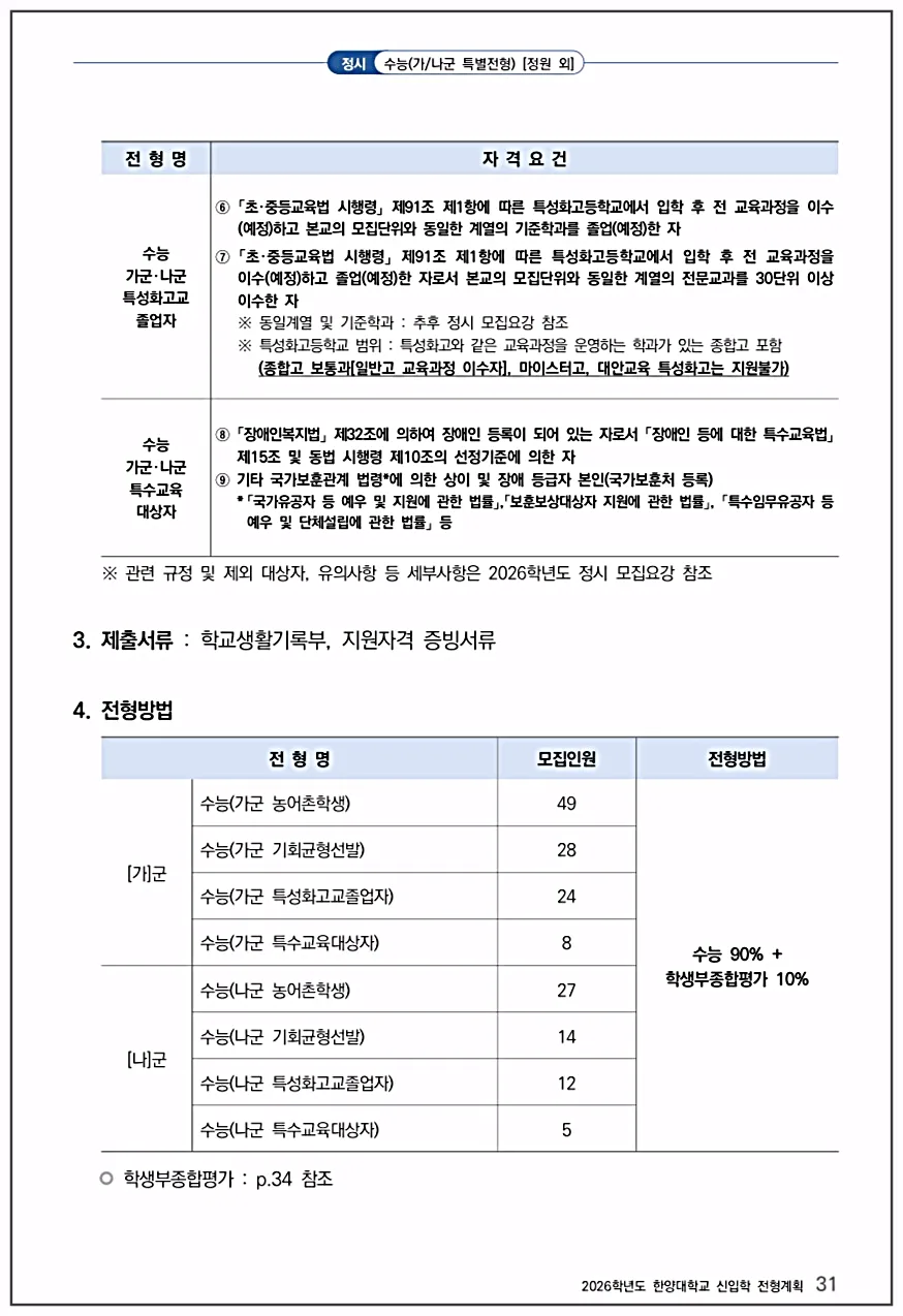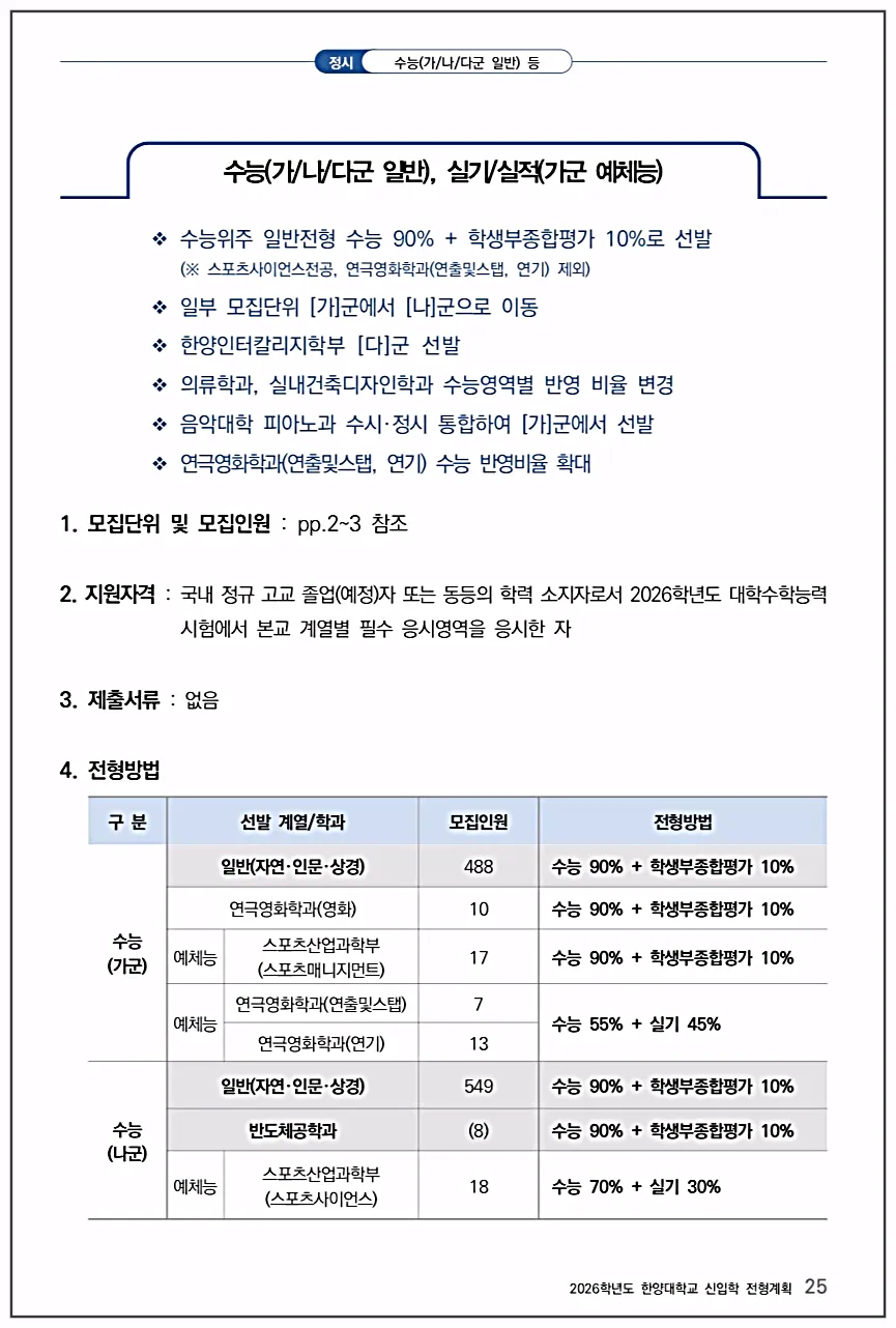 최신 2026 한양대 정시 모집요강, 전형별 핵심 정리