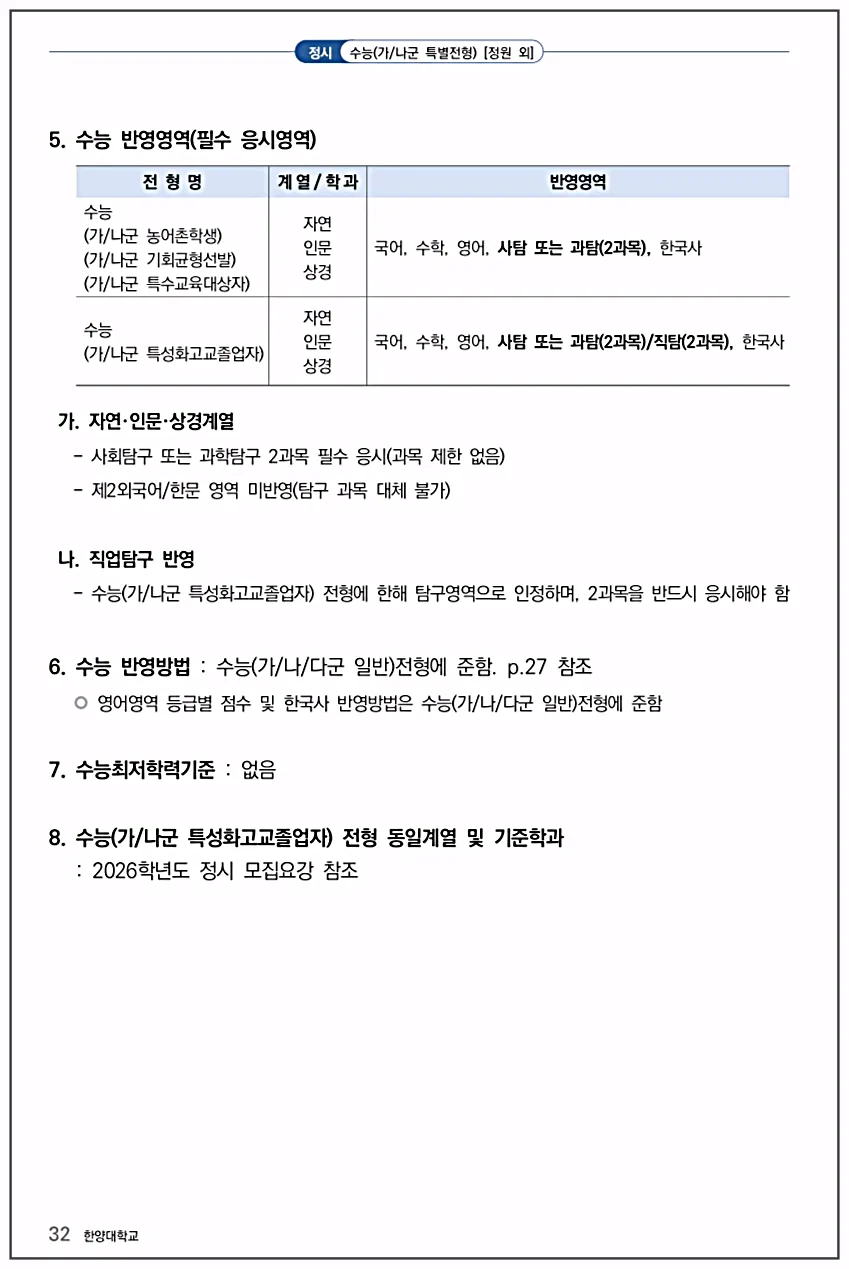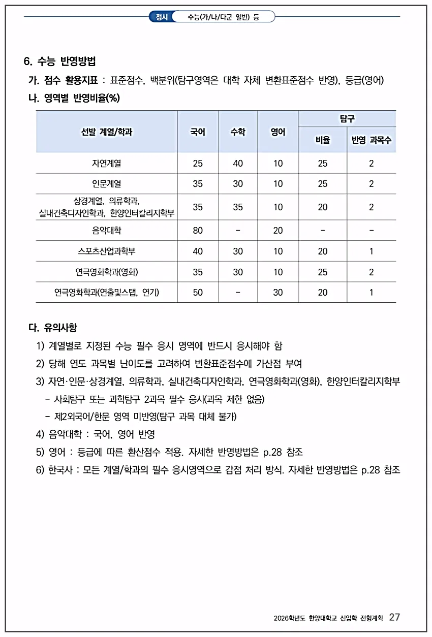 지금까지 2026 한양대의 정시 모집요강에 대해 살펴보았습니다.