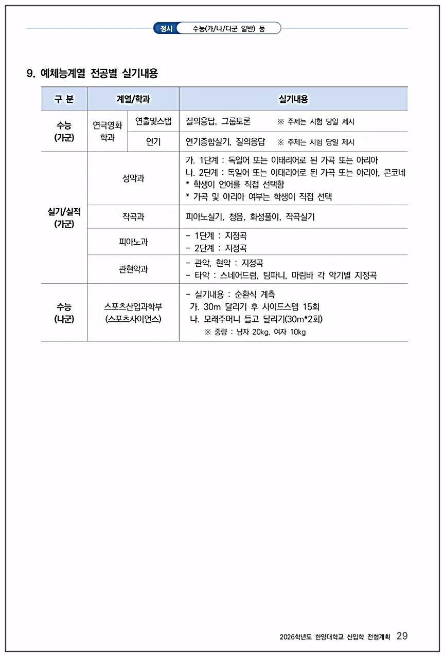 수능(가/나/다군 일반) & 실기/실적(가군 예체능)