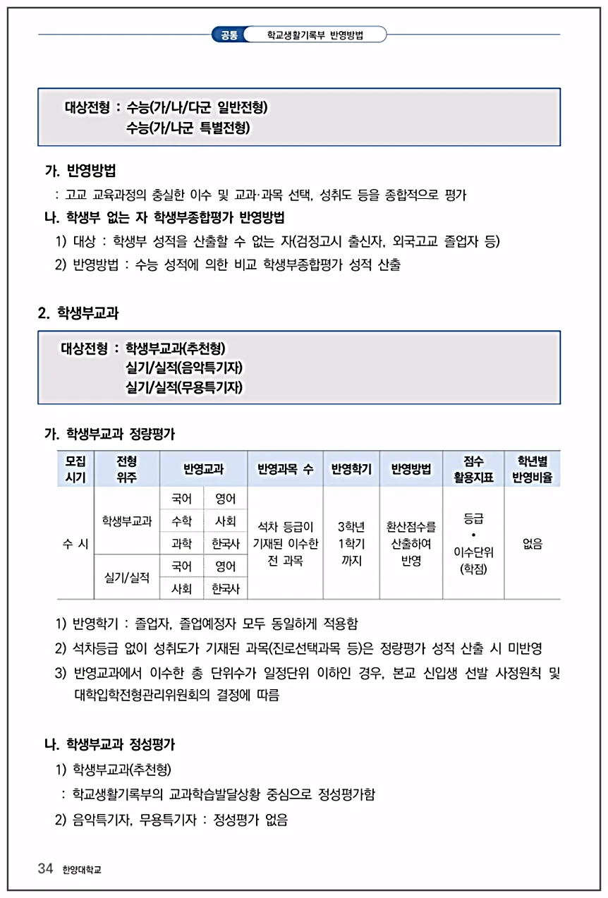한양대는 다른 대학에 비해 모집요강이 한눈에 보기 좋게 구성되어 있습니다.