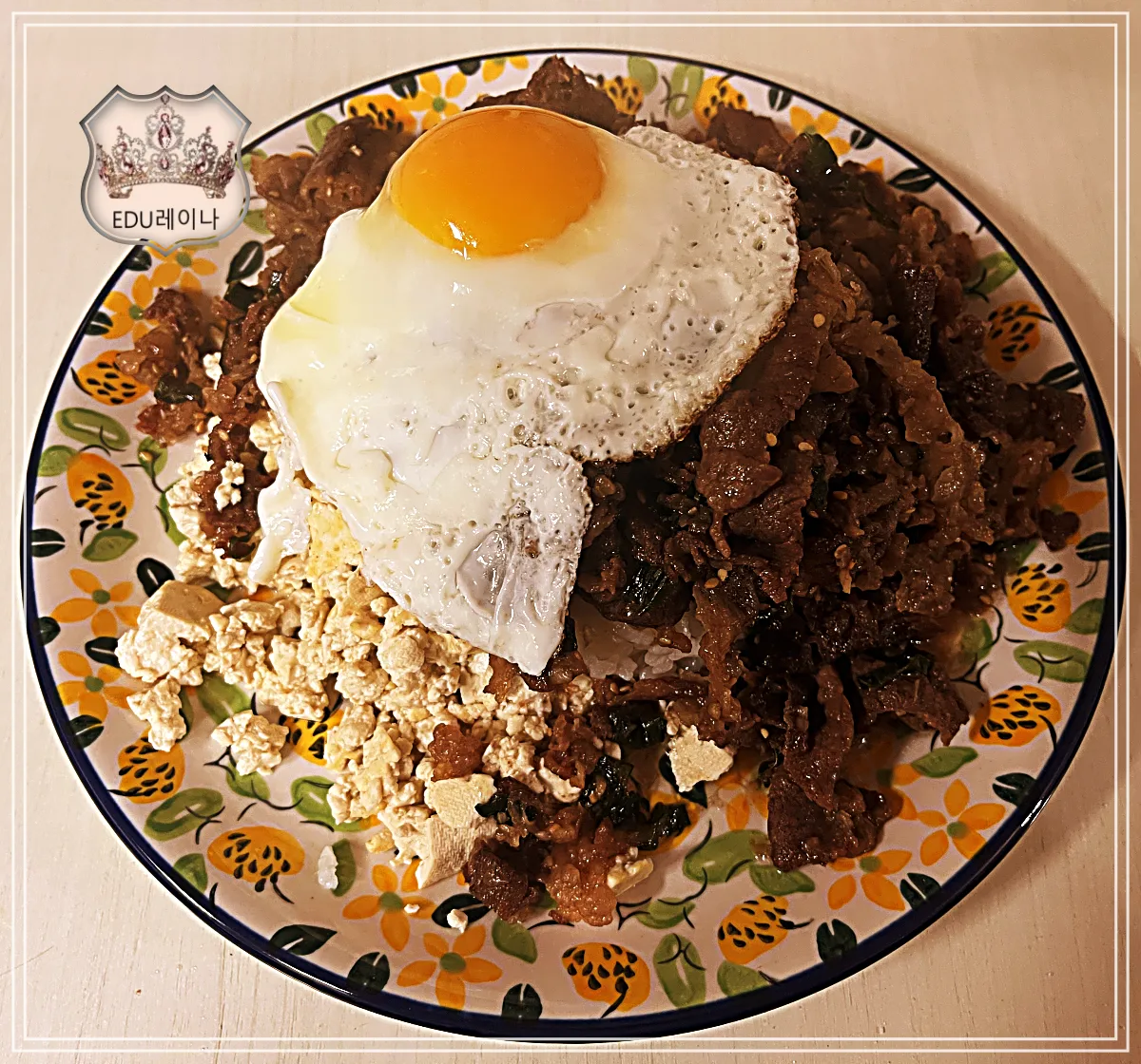 그리고 마지막에 반숙 달걀 프라이를 해서 올리면 완성이에요.