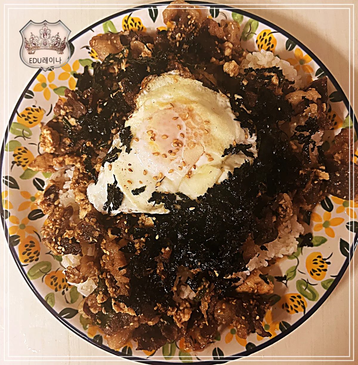 달걀 프라이 대신 생달걀 노른자만 걸러서 올려도 됩니다.