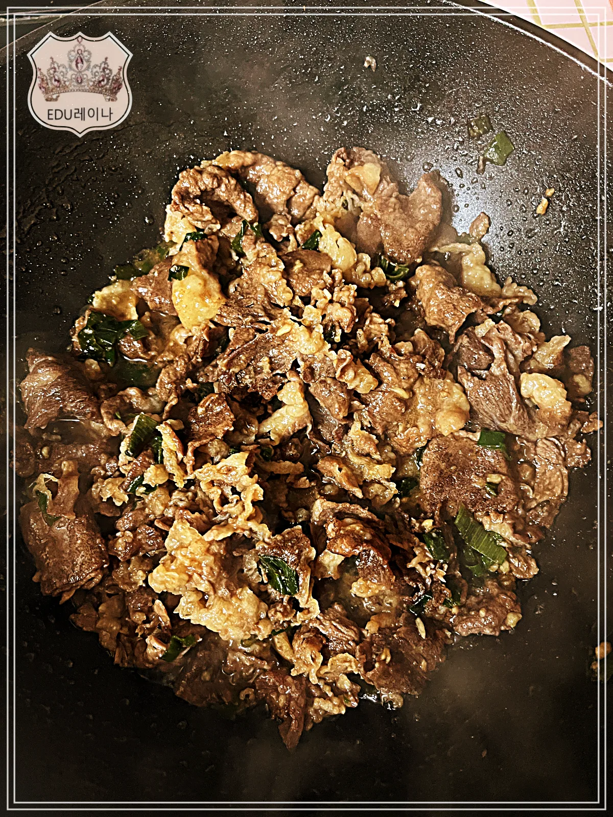 파, 마늘, 차돌박이 볶기