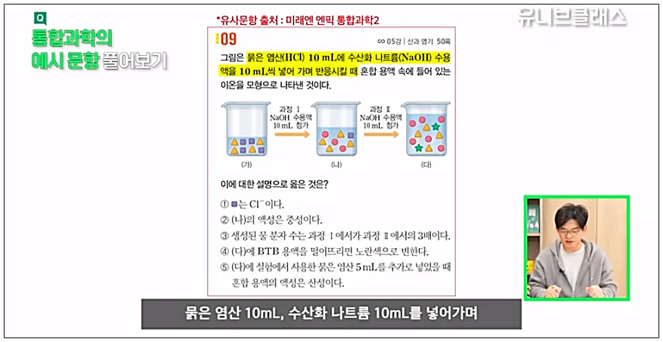 ✔ 바로 '미래엔에서 출간한 통합과학과 통합사회'의 문제집에 있는 예시문항이에요!