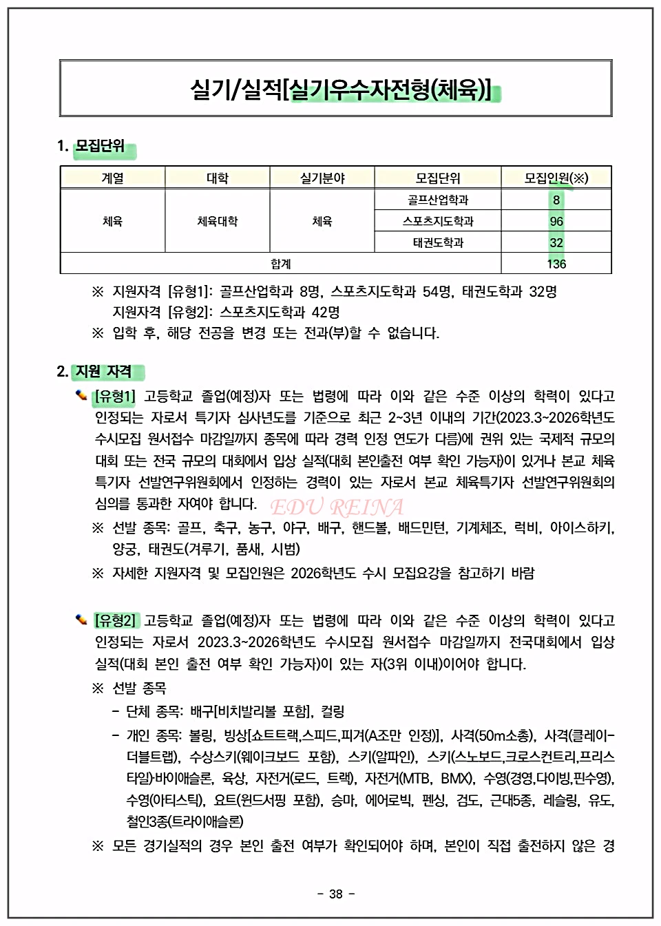체육계열의 학과는 대회 실적이 중요하므로 지원 자격을 꼼꼼히 살펴볼 필요가 있어요.