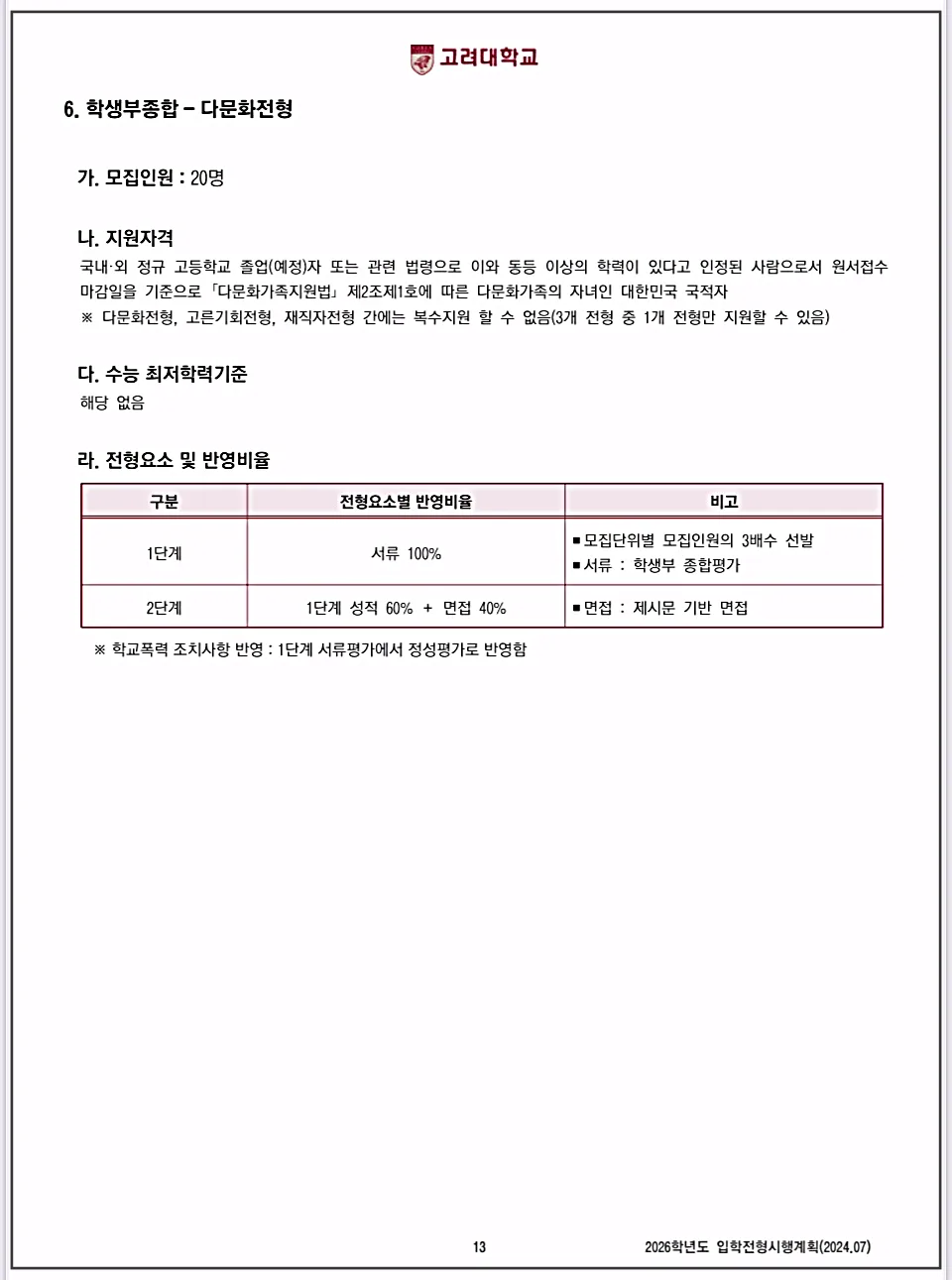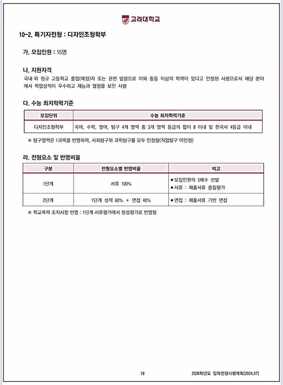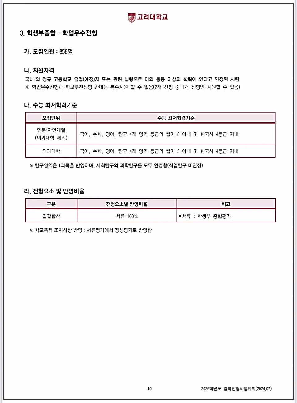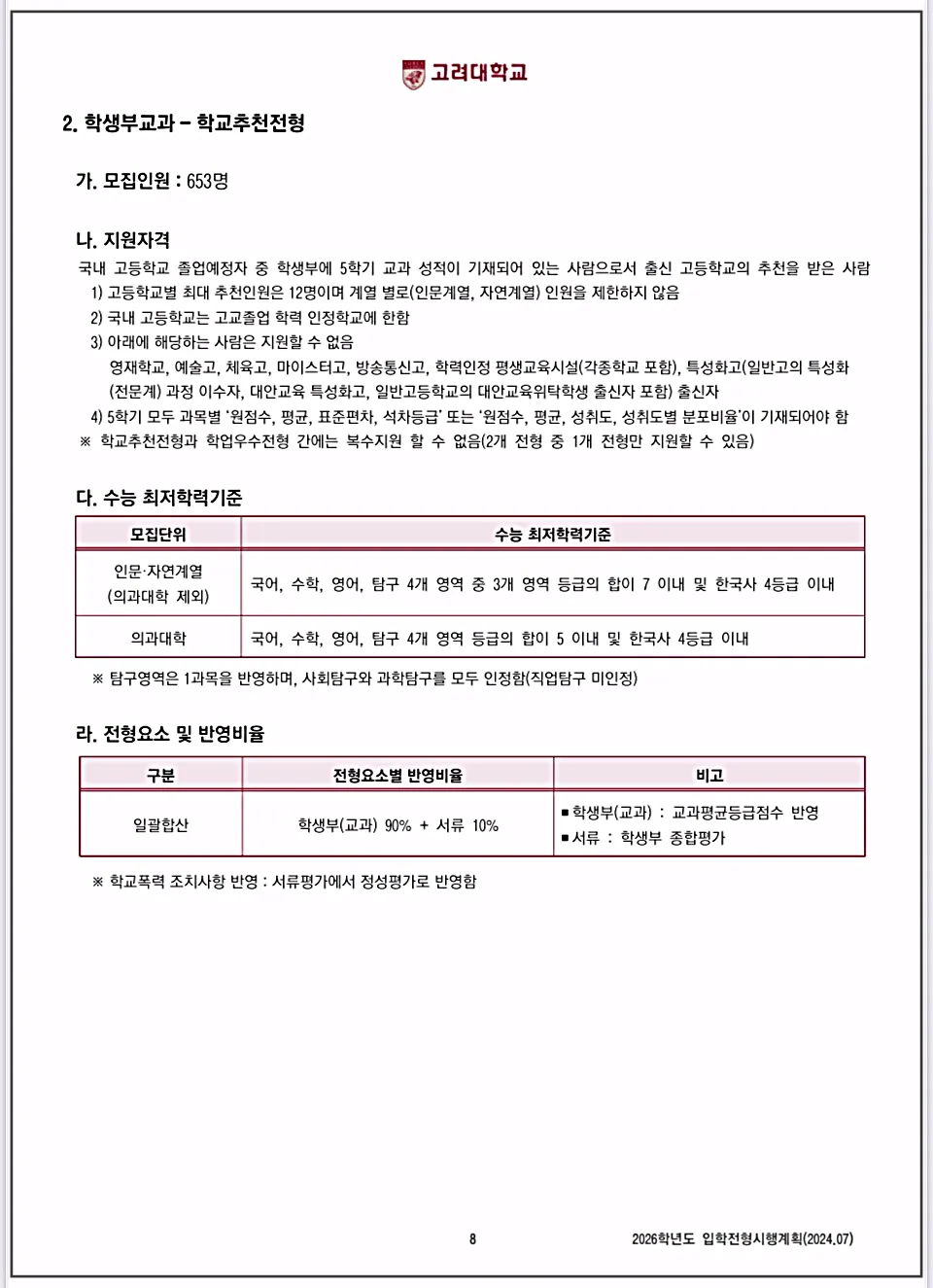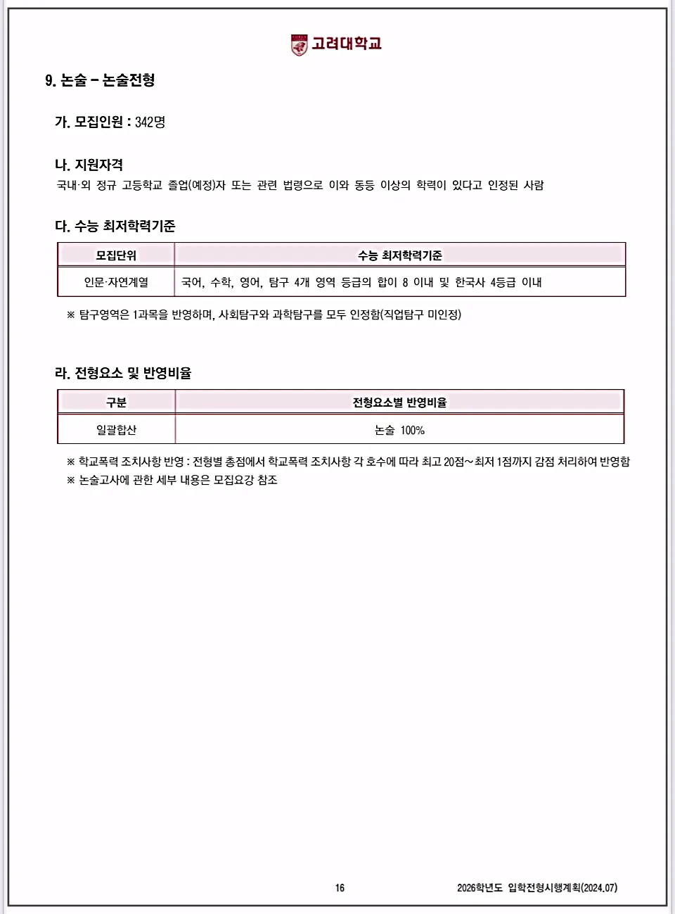 | 2026 고려대 서울캠퍼스 정시와 특별전형, 필수 체크리스트 총정리 (2) | 2025.01.25 |
