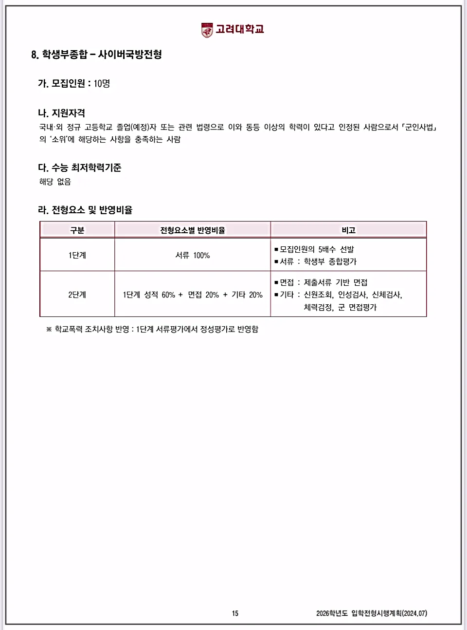 - 학생부종합 - 사이버국방전형