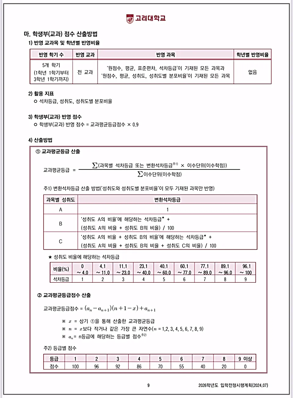 | 7. 교과점수 산출방법 확인하기 |
