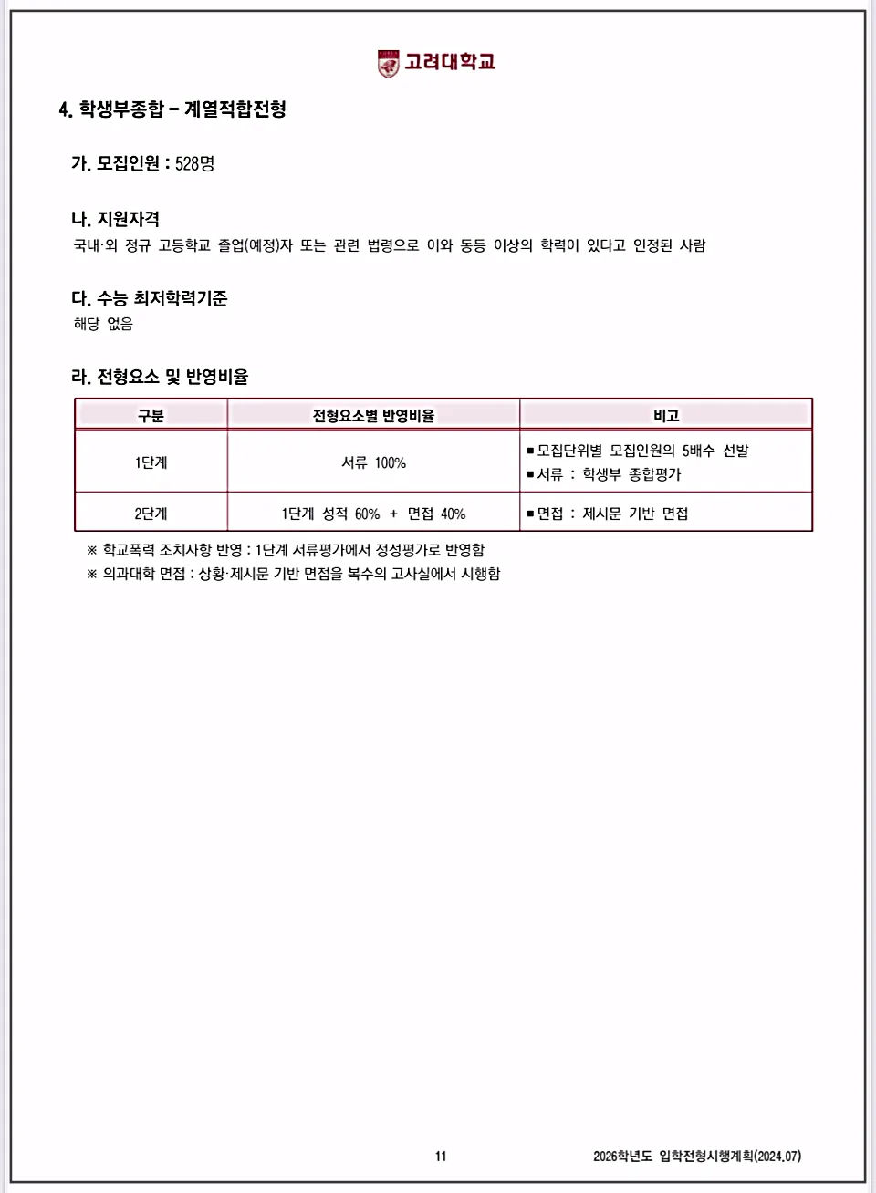 자료는 2026 고려대 입학전형시행계획을 참고합니다.