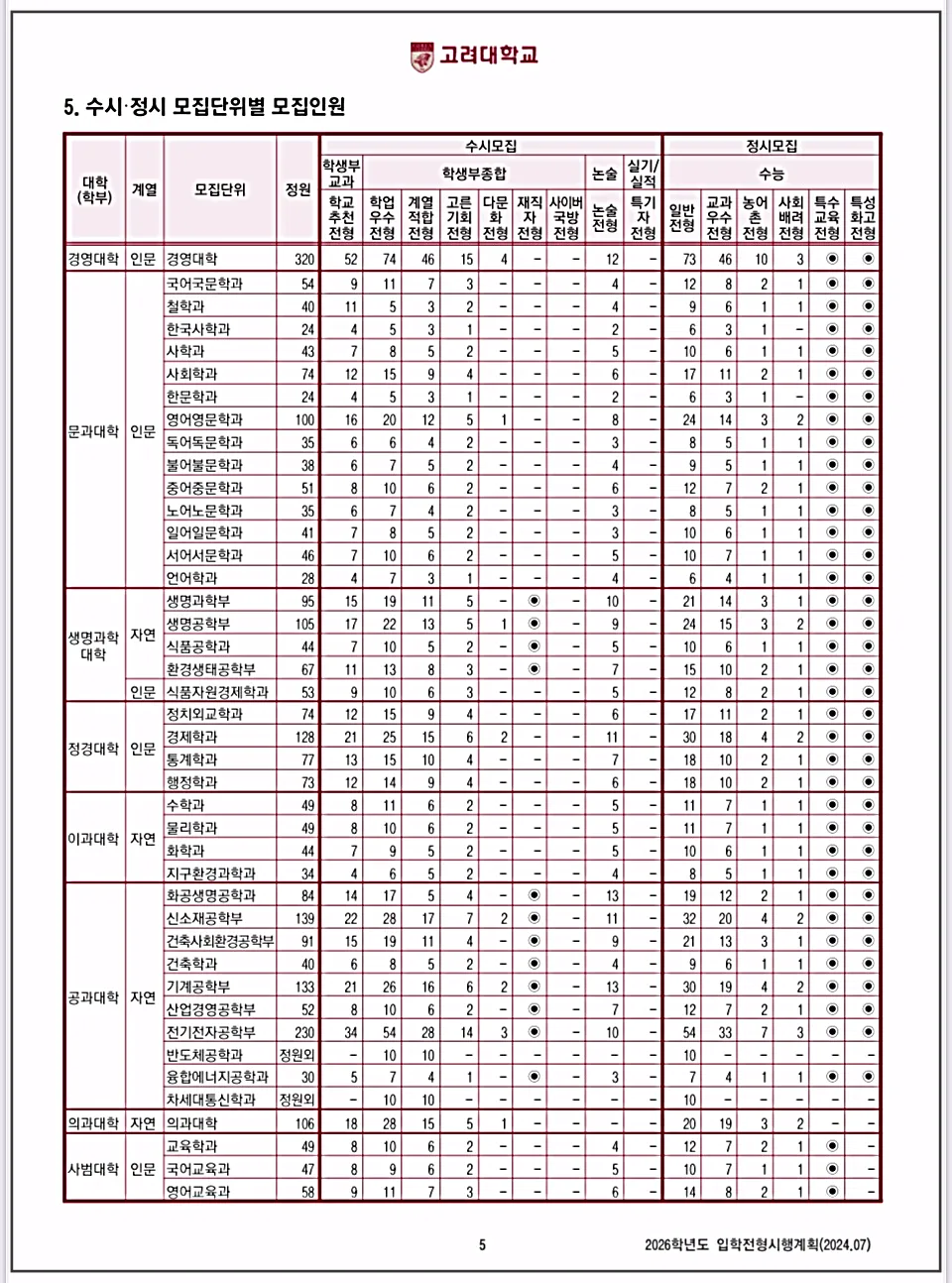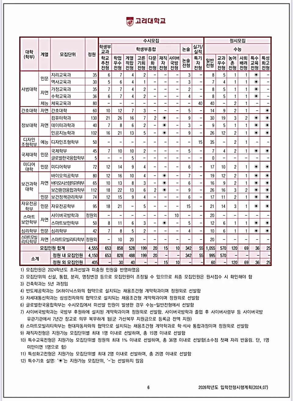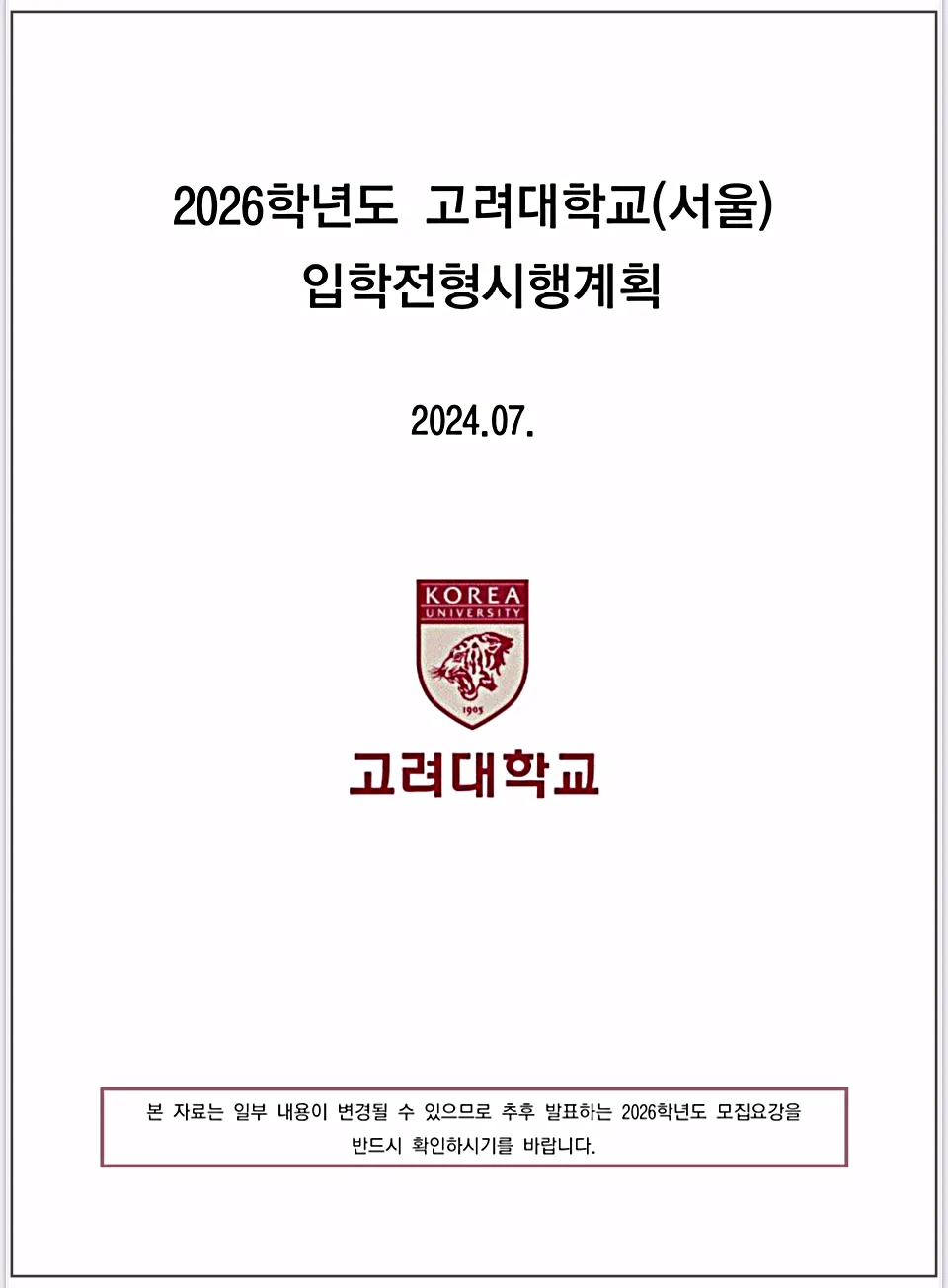고려대 입학처에는 '2026학년도 고려대학교(서울) 입학전형시행계획'이 올려져 있는데요,