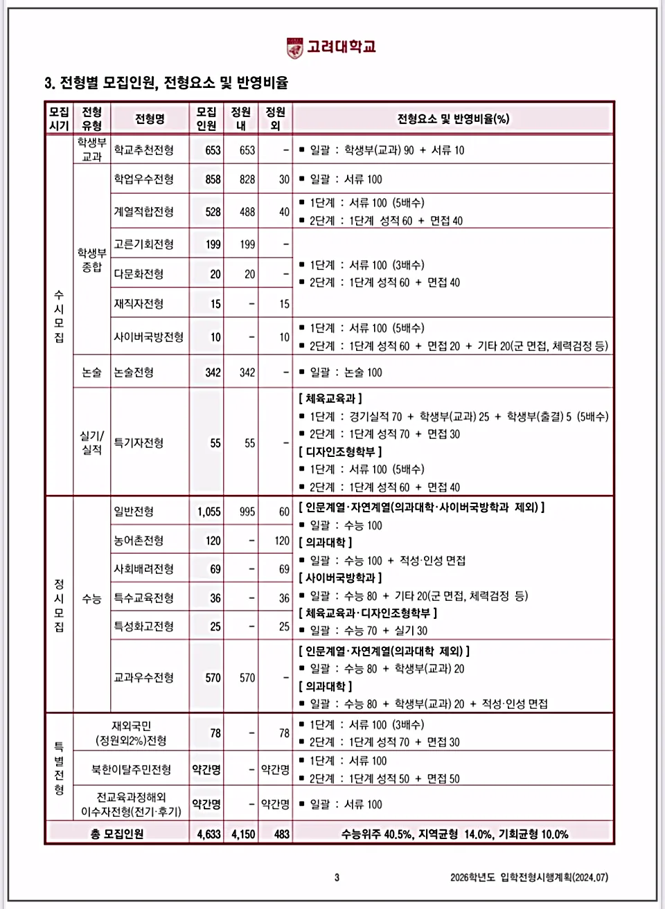 | 2026 고려대 서울캠퍼스 정시와 특별전형, 필수 체크리스트 총정리 (2) | 2025.01.25 |
