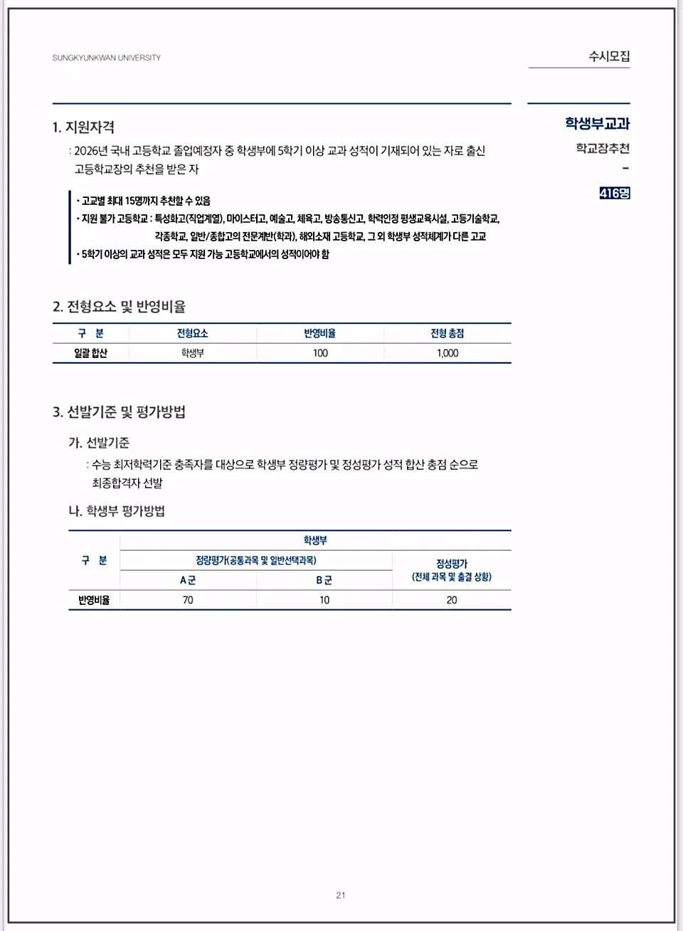 🔺 입시를 보다!! 26학년도 입학전형 시행계획 (성균관대학교) / 최강 SKY
