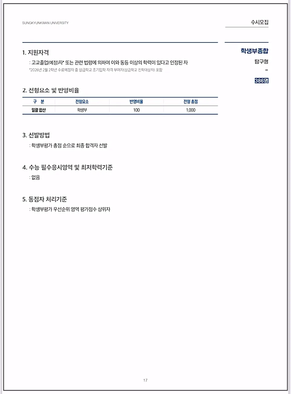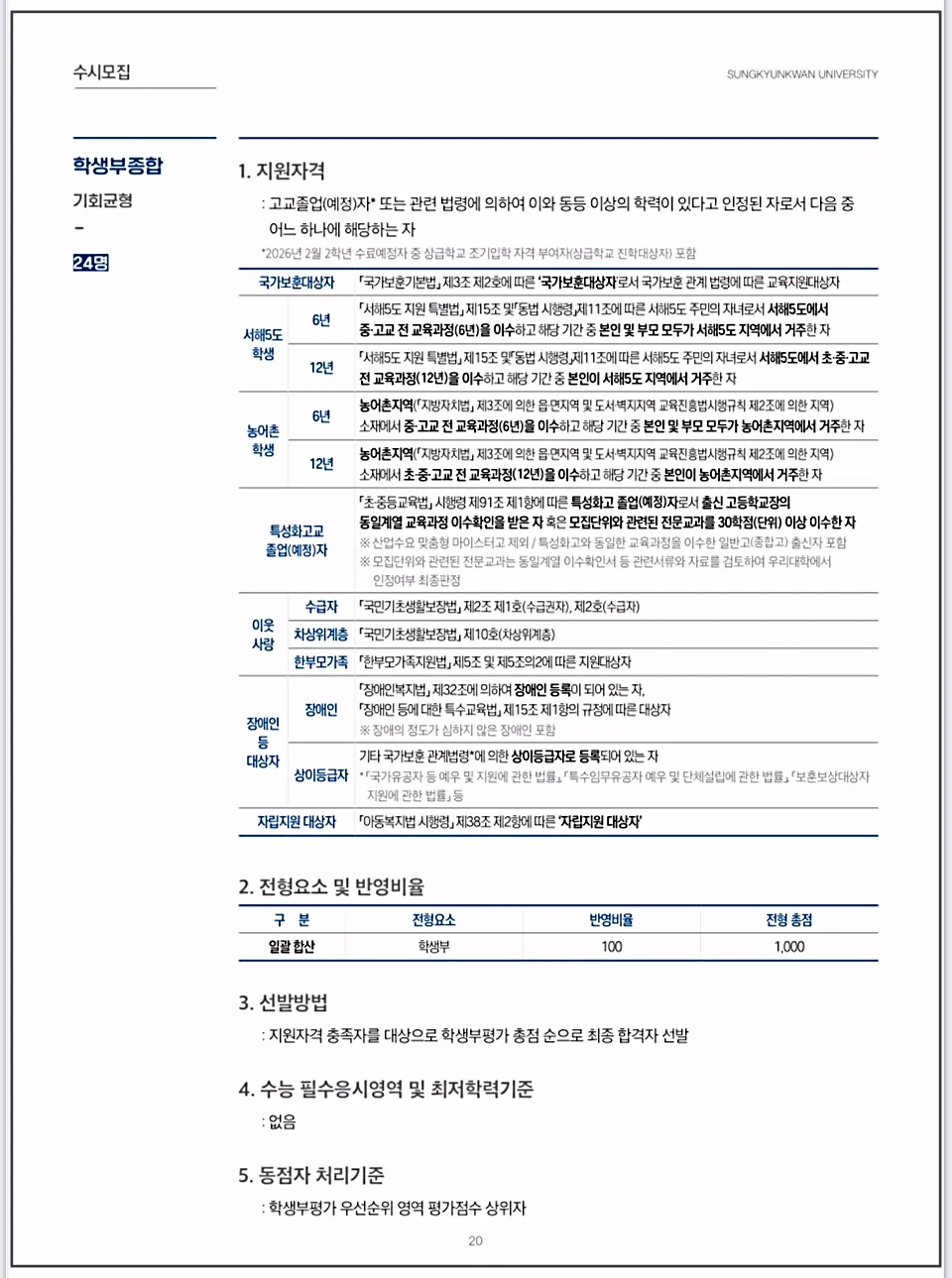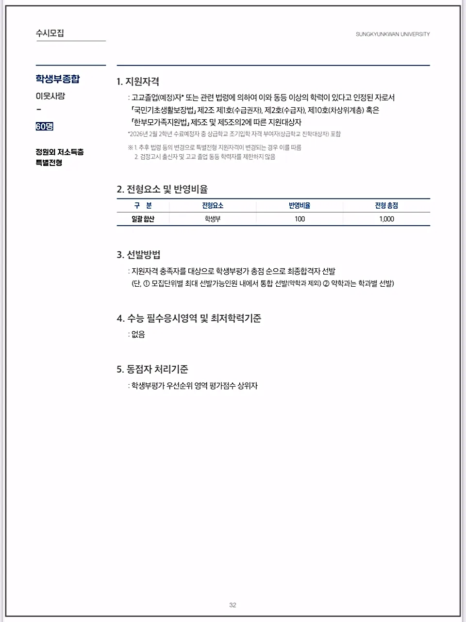 지금까지 '2026 성균관대 입학전형 수시모집'에 대해 살펴보았습니다.