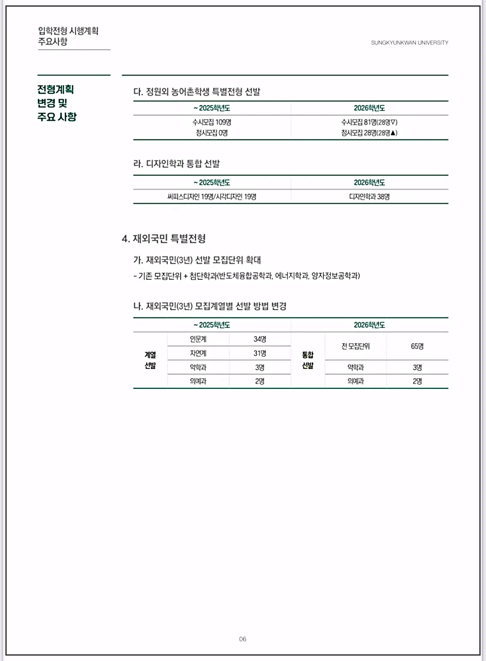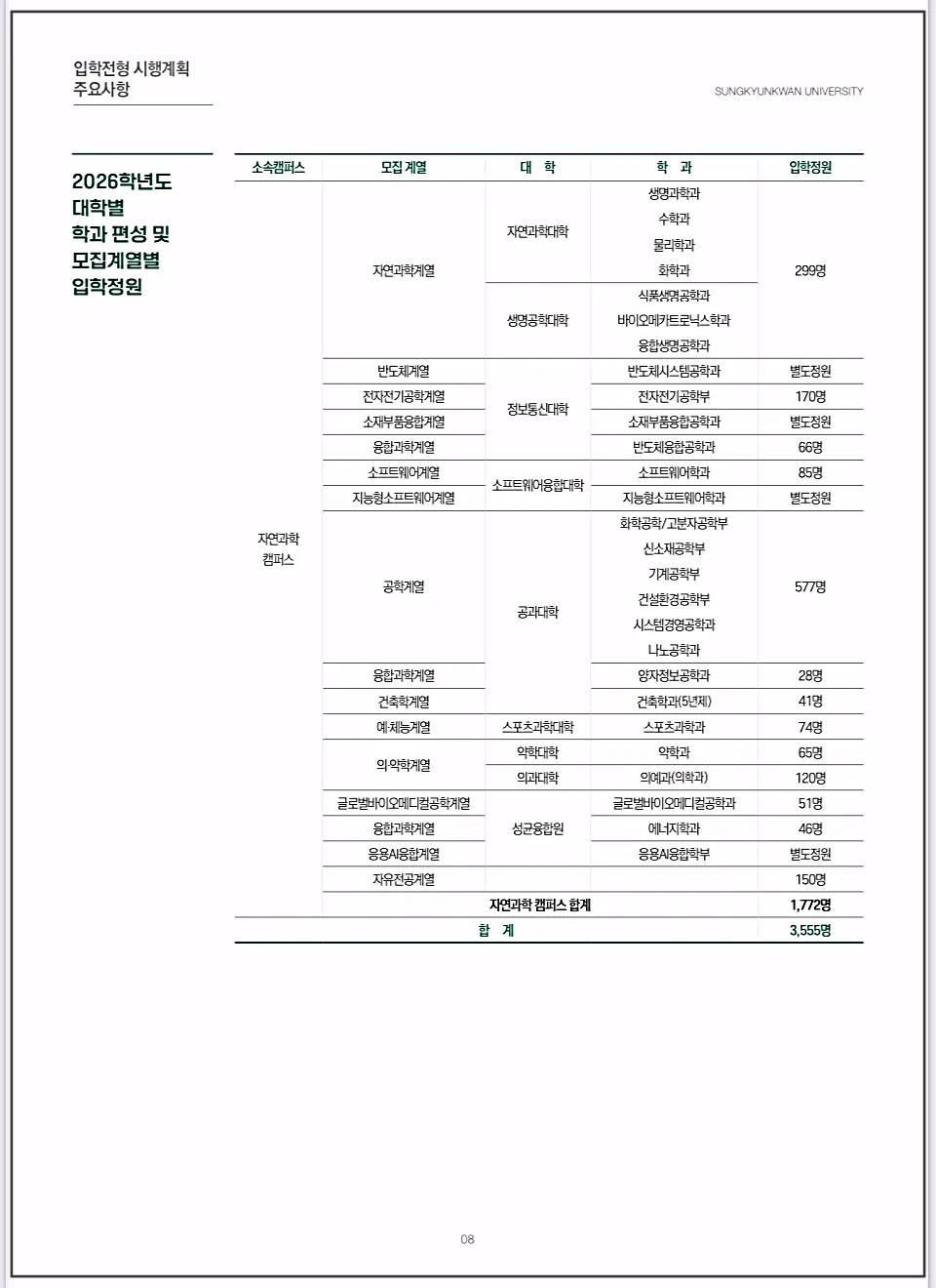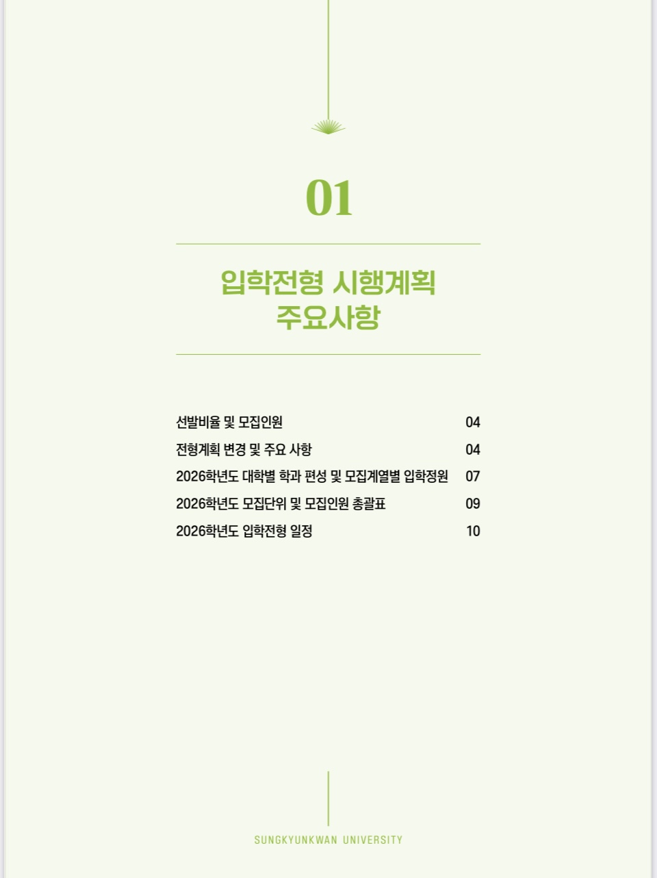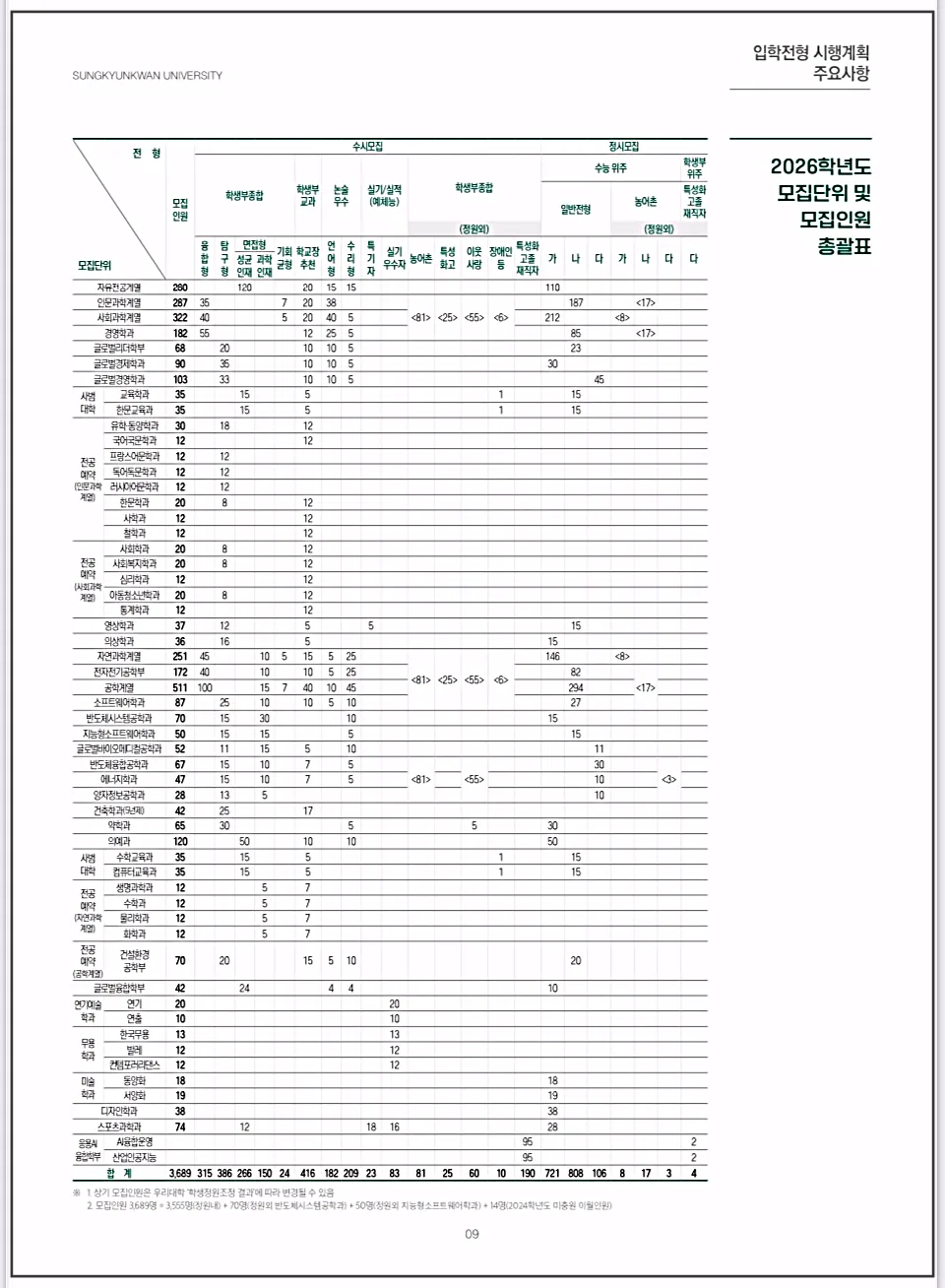 이번 포스팅에서는 이 자료를 바탕으로 '2026학년도 성균관대 입학전형 주요 사항과 모집인원'에 대해 알아보려고 합니다.