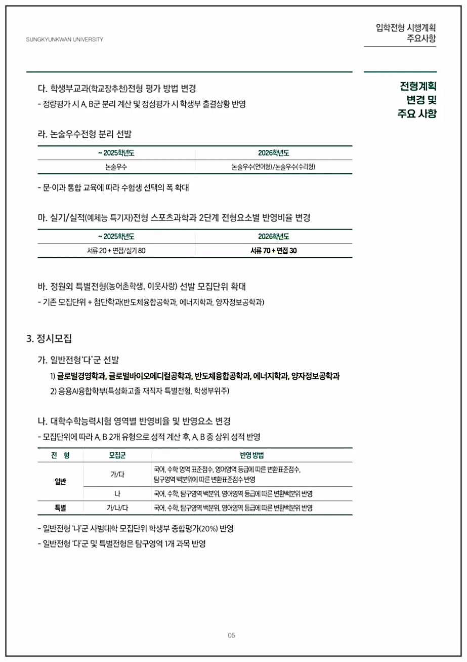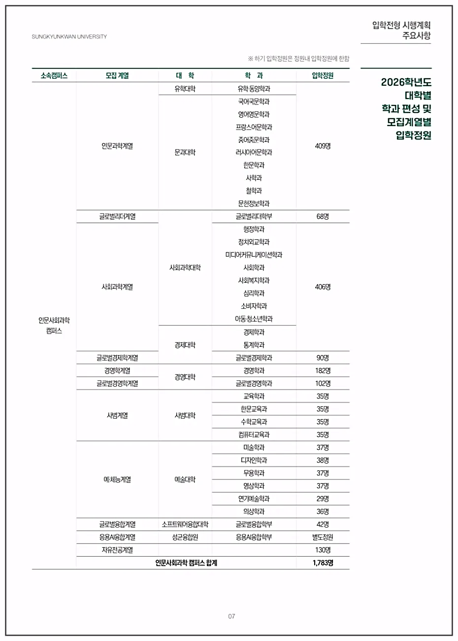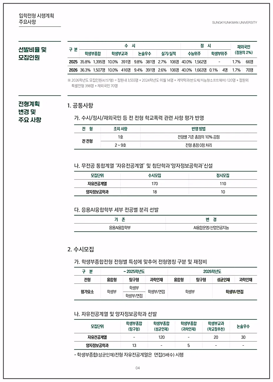 2026 성균관대 입학전형 총정리, 변경사항과 모집인원 한눈에 보기