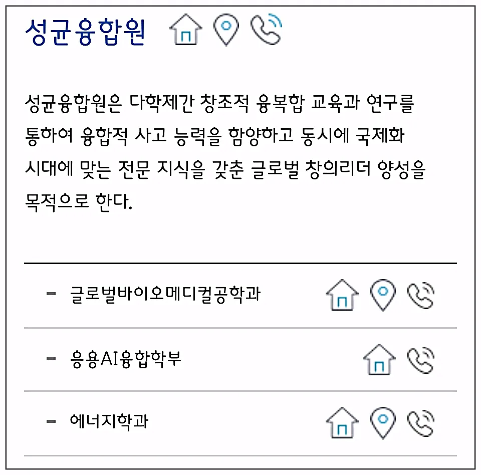 성균관대 입학처 홈페이지에 들어가셔서 관심 있는 학과는 집모양 버튼을 눌러보세요.