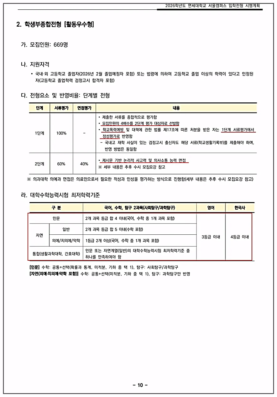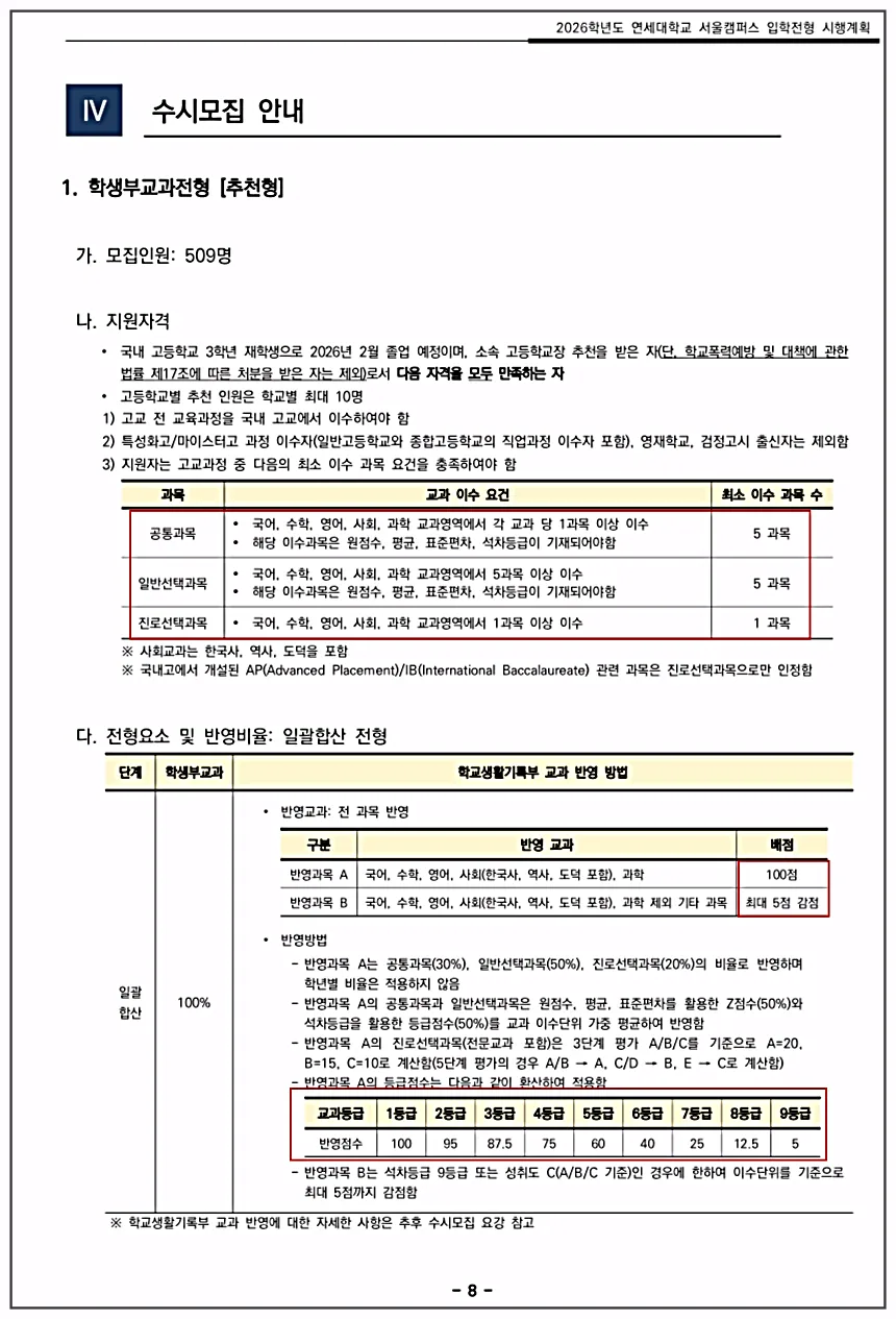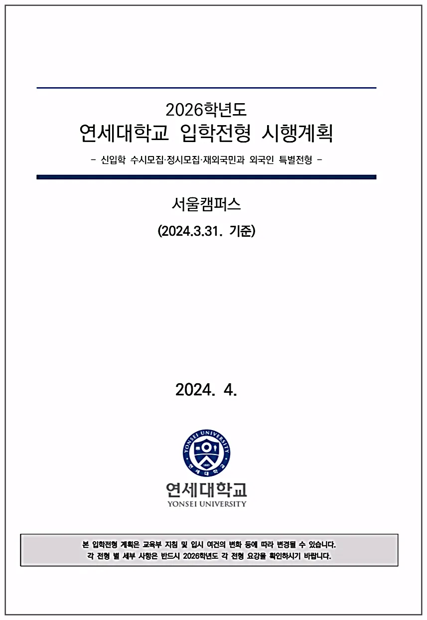 이번 포스팅에서는 '2026학년도 연세대학고 입학전형 시행계획' 자료를 바탕으로 여러 가지 입학 전형에 대해 살펴보고자 합니다.