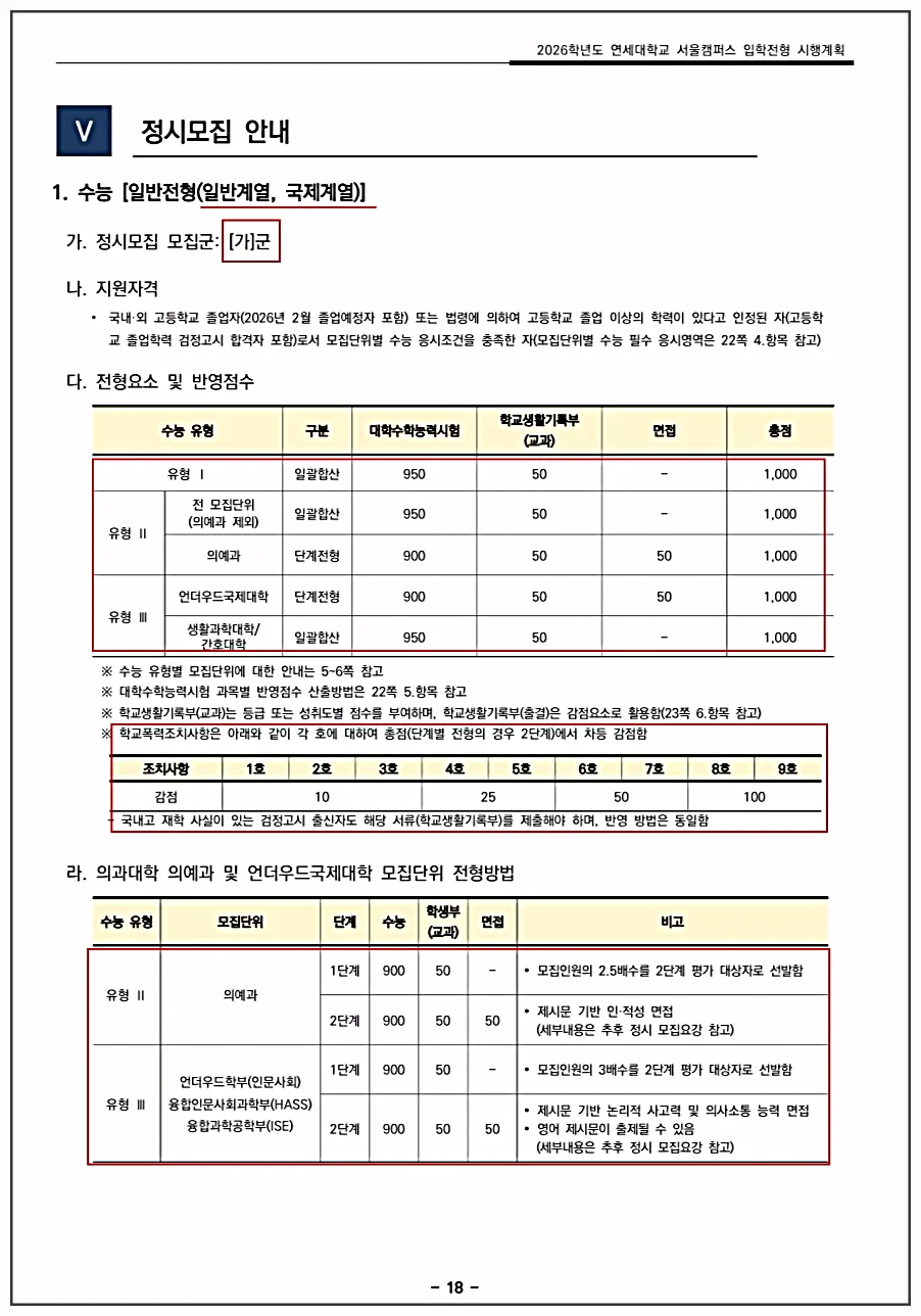 | 3. 의예과/언더우드 국제대학만 1000점 만점에 수능성적900+학생부 교과50+면접50 (단계전형) |