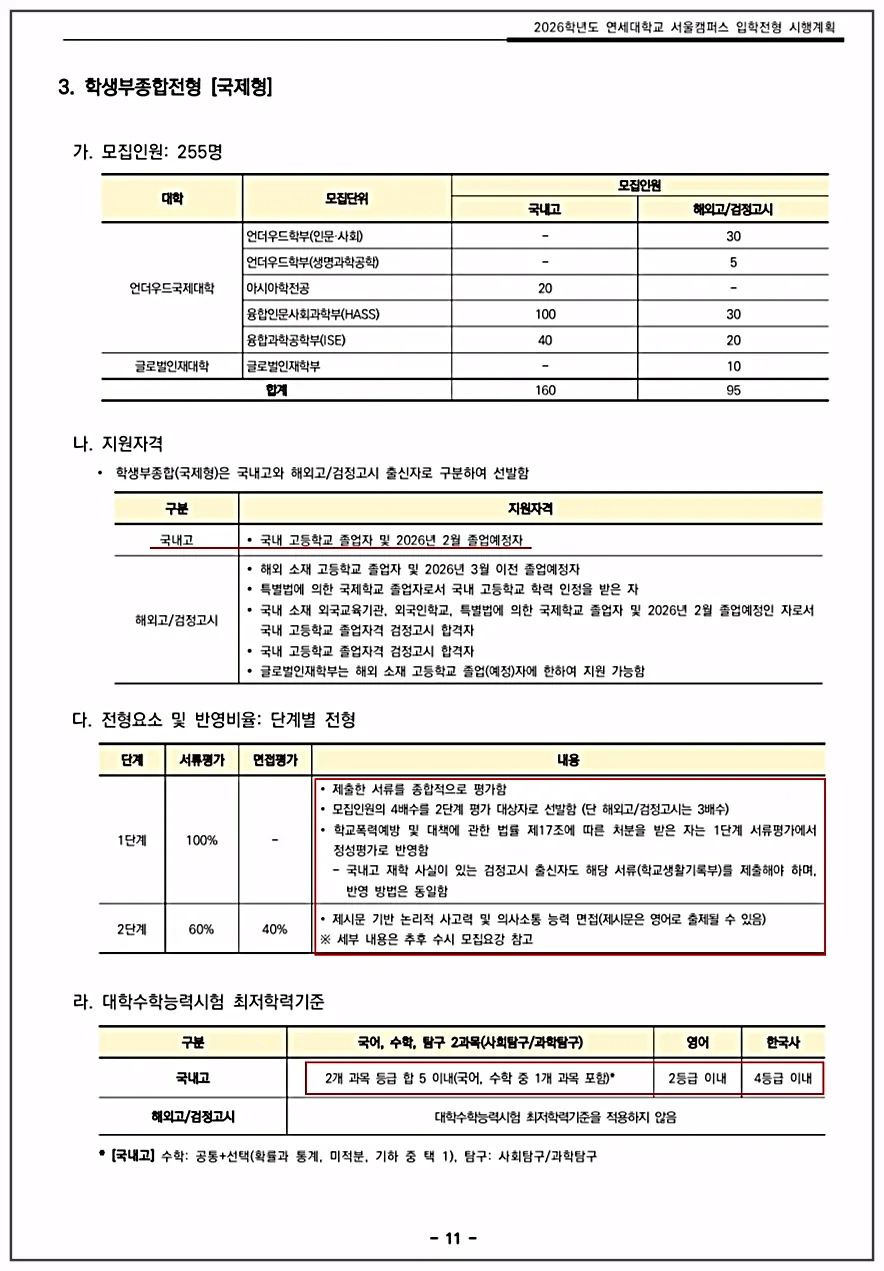 연세대학교는 언더우드 국제대학이 있어서 국제형을 많이 뽑네요.