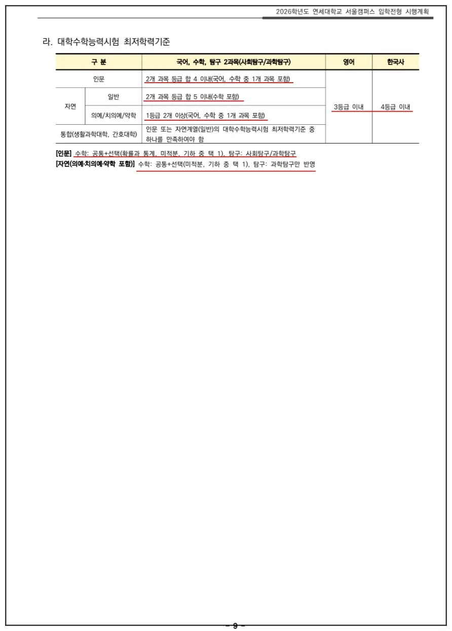| 5. 수능최저 인문 : 공통+수학(확통,미적분,기하 중택1),사탐/과탐 |