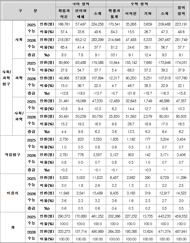 - 대학별 가산점 확인: '사탐런' 유행에도 불구하고 고려대, 연세대, 성균관대 등은 과학탐구 응시자에게 3~5%의 가산점을 부여하여 유불리를 조정하고 있음을 유의하세요.