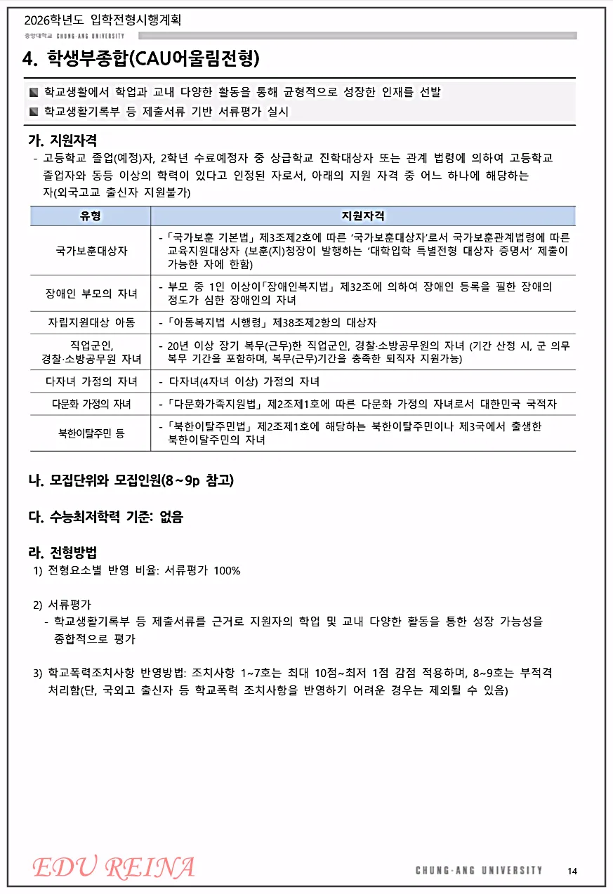 4. 학생부종합(CAU어울림전형)