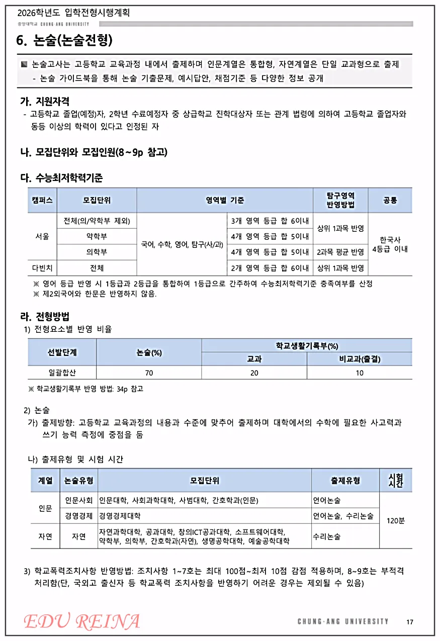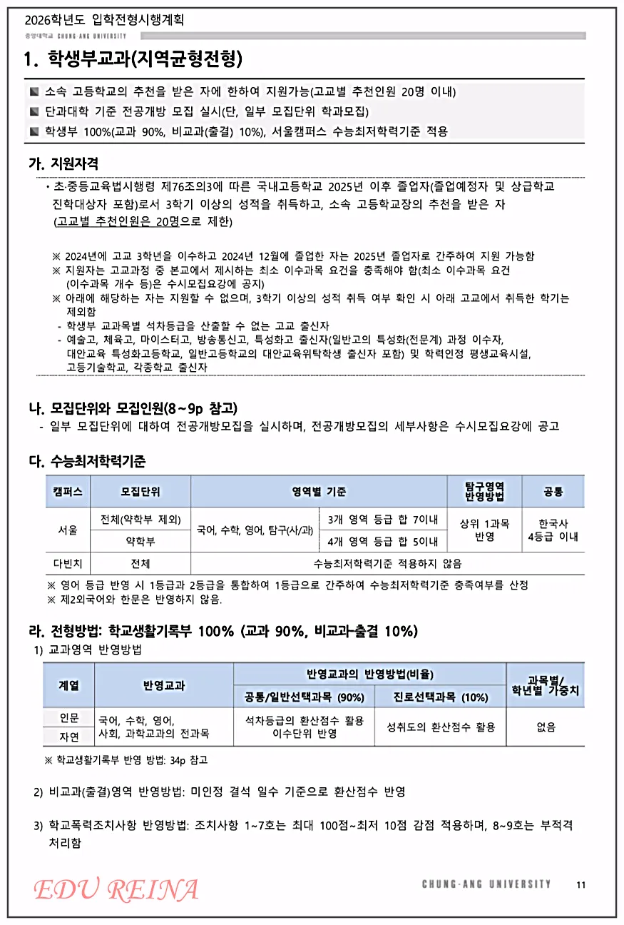 지난번 포스팅에서는 '2026 중앙대 입시전형의 주요 변경사항과 모집인원'을 전체적으로 간략하게 살펴보았는데요,