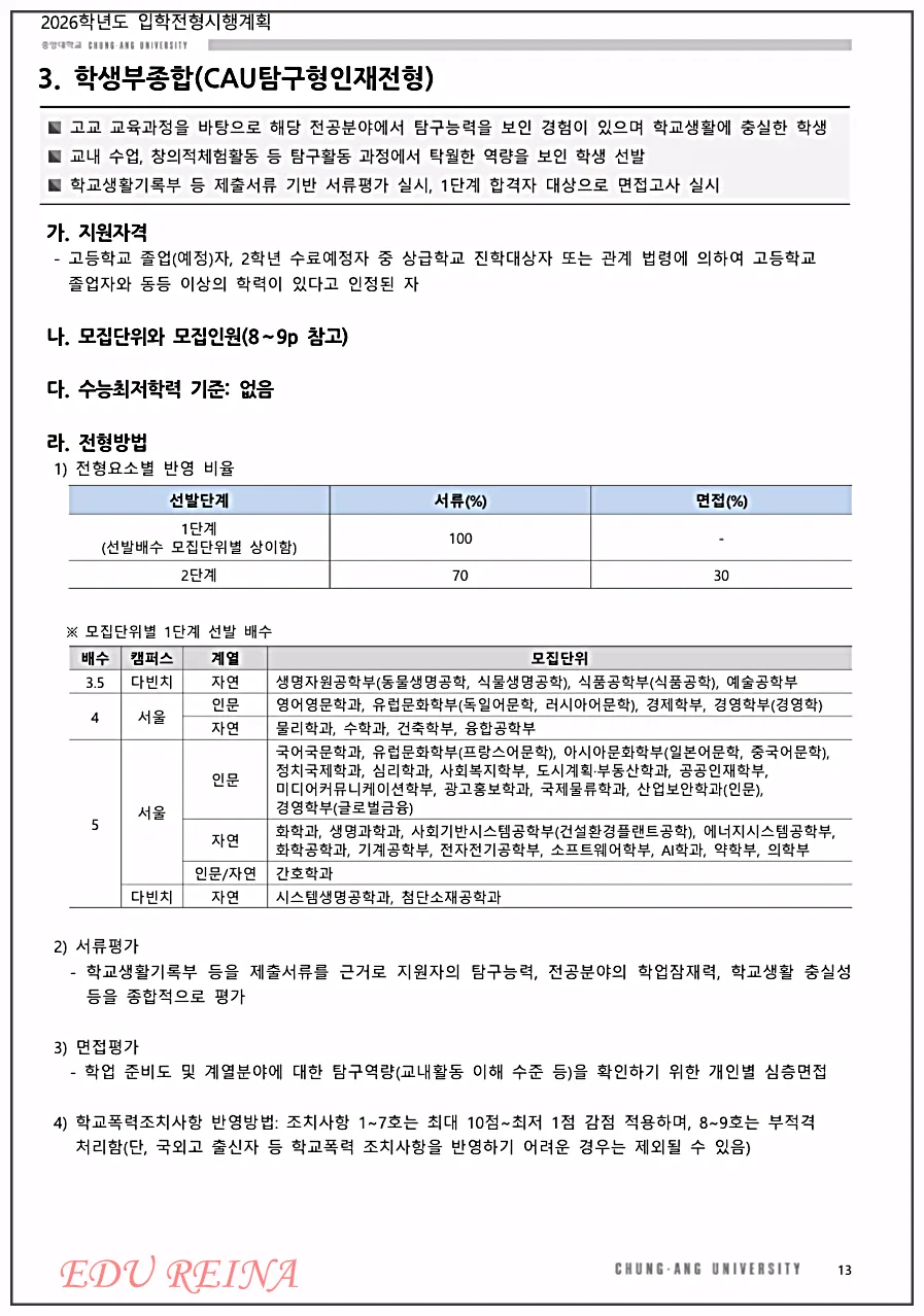 3. 학생부종합(CAU탐구형 인재전형)
