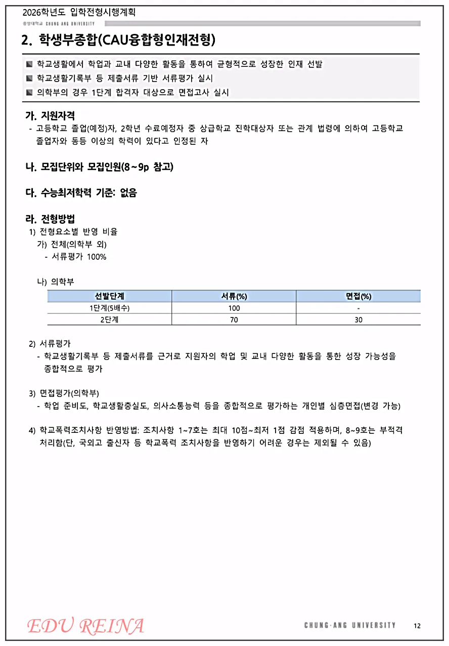2. 학생부종합(CAU융합형 인재전형)